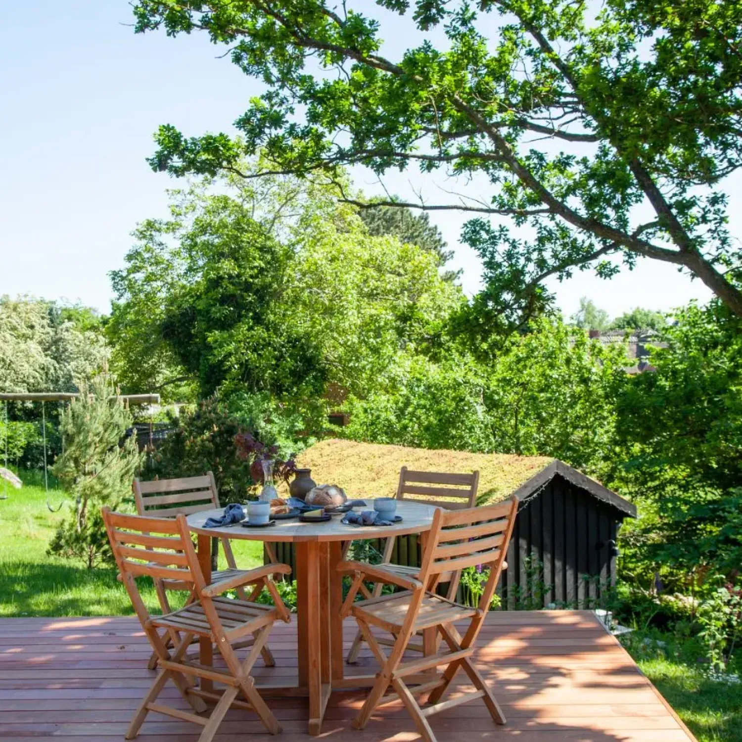 Fremstillet af teaktræ har dette havebord en naturlig udstråling. Teaktræet giver bordet en lys farve og finish, hvilket kan bidrage til dets visuelle appel i udendørs omgivelser. Bordets runde form med en diameter på 110 cm og en højde på 74 cm gør det velegnet til forskellige anvendelser, fra intime middage til større sammenkomster. Dette Cinas Butterfly-bord er designet med fokus på at skabe et funktionelt udendørs møbel, der kan bruges i forskellige sammenhænge og tilføje et karakteristisk element til udendørs områder.
