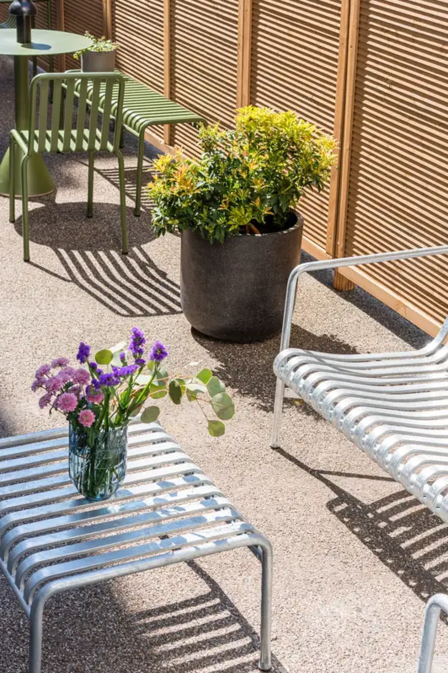 HAY Palissade Ottoman udmærker sig ved sin robuste konstruktion i hotgalvaniseret stål. Det slattedesæde og den elegante metalramme skaber en ideel balance mellem komfort og stil. Materialets naturlige egenskaber bidrager til møblets karakter og udseende over tid. Den hotgalvaniserede overflade giver ikke kun en attraktiv finish, men sikrer også langvarig beskyttelse mod vind og vejr.
