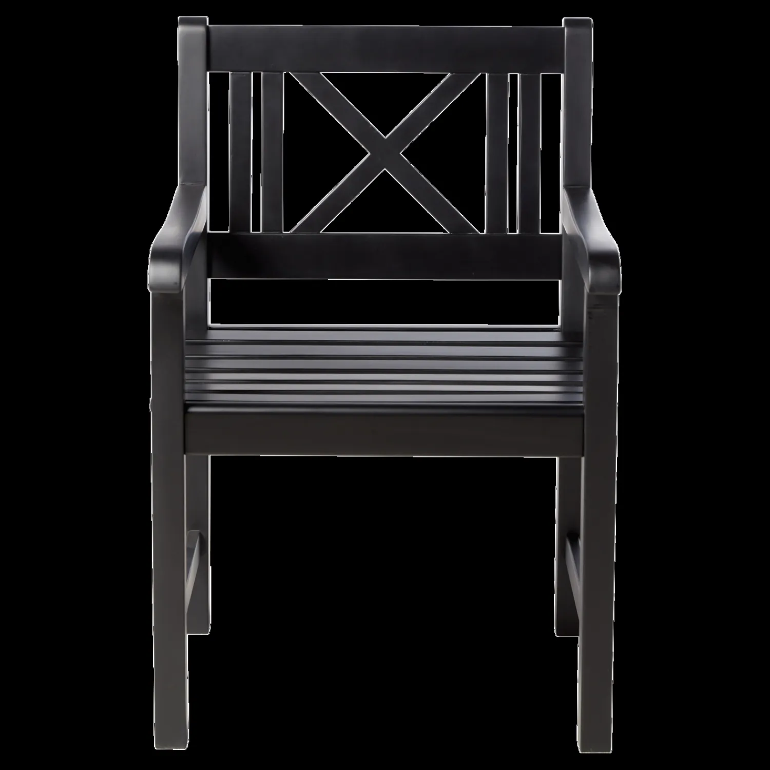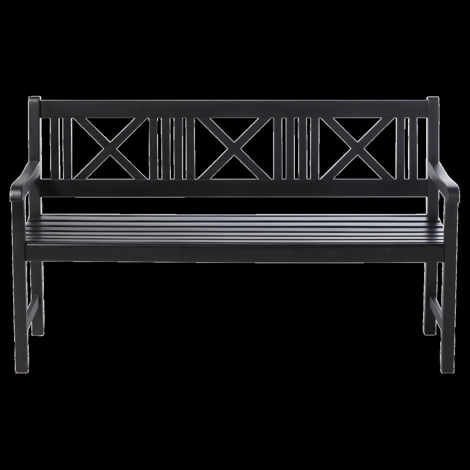 Rosenborg møbelsættet er konstrueret af holdbart mahogni-træ. Overfladen er behandlet med mat sort PU-maling, hvilket gør sættet vandtæt og modstandsdygtigt over for vejrpåvirkninger. Det dekorative mønster i ryglænene tilfører et særligt præg til designet.