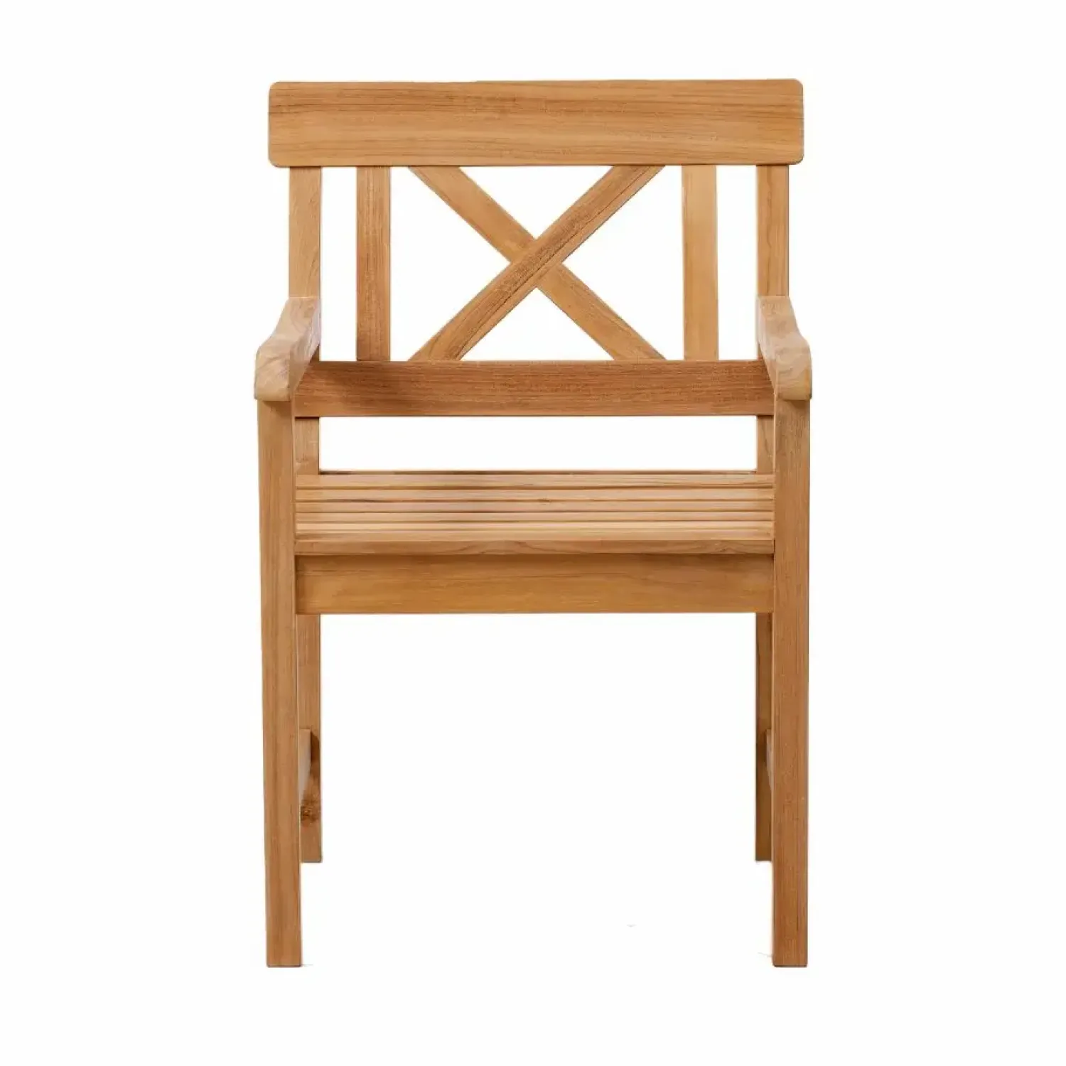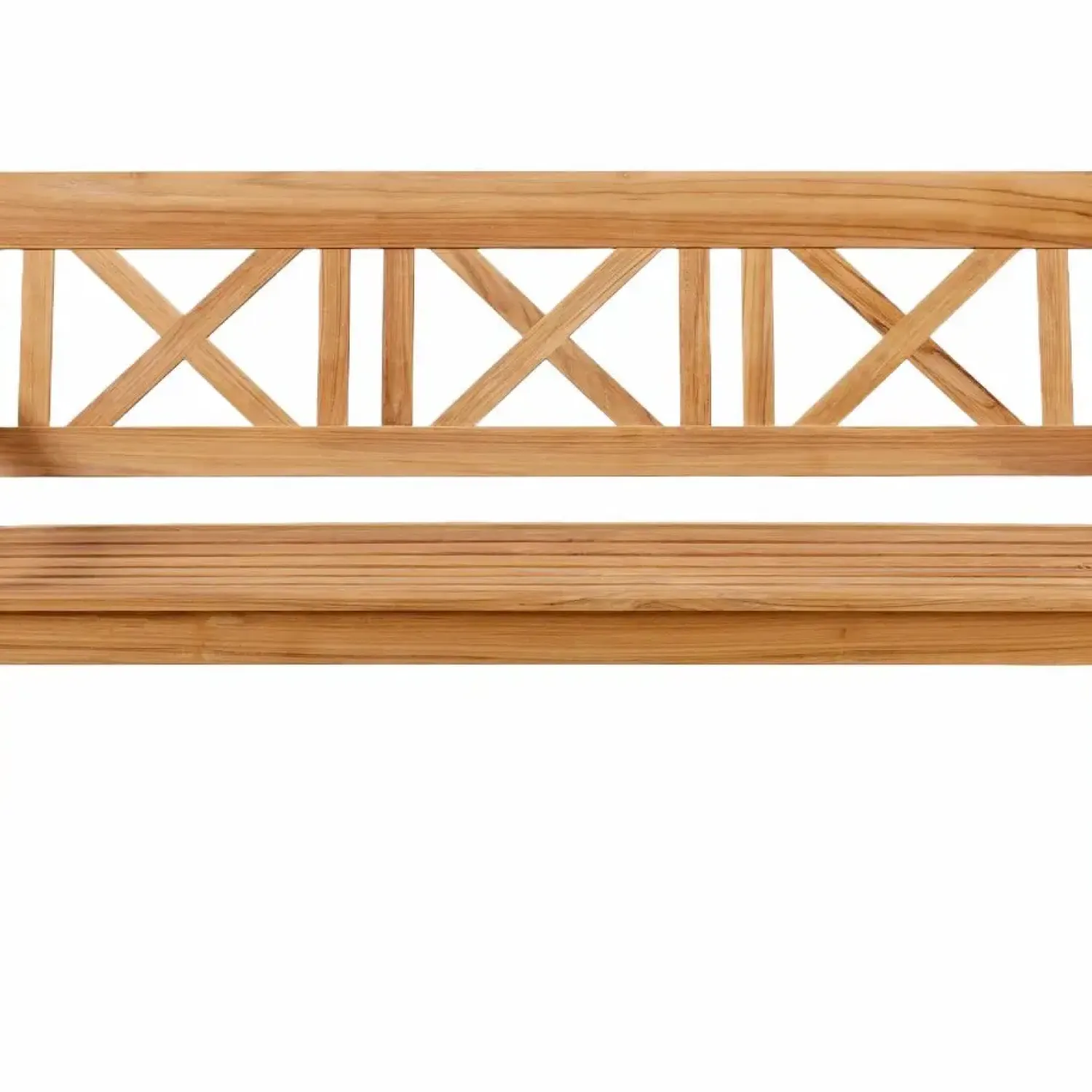 Havesættet er omhyggeligt fremstillet af teaktræ, hvilket bidrager til møblernes udseende og konstruktion. Det elegante krydsrygsdesign på stolene og bænken tilføjer ikke kun et visuelt element, men giver også støtte og komfort til brugerne.