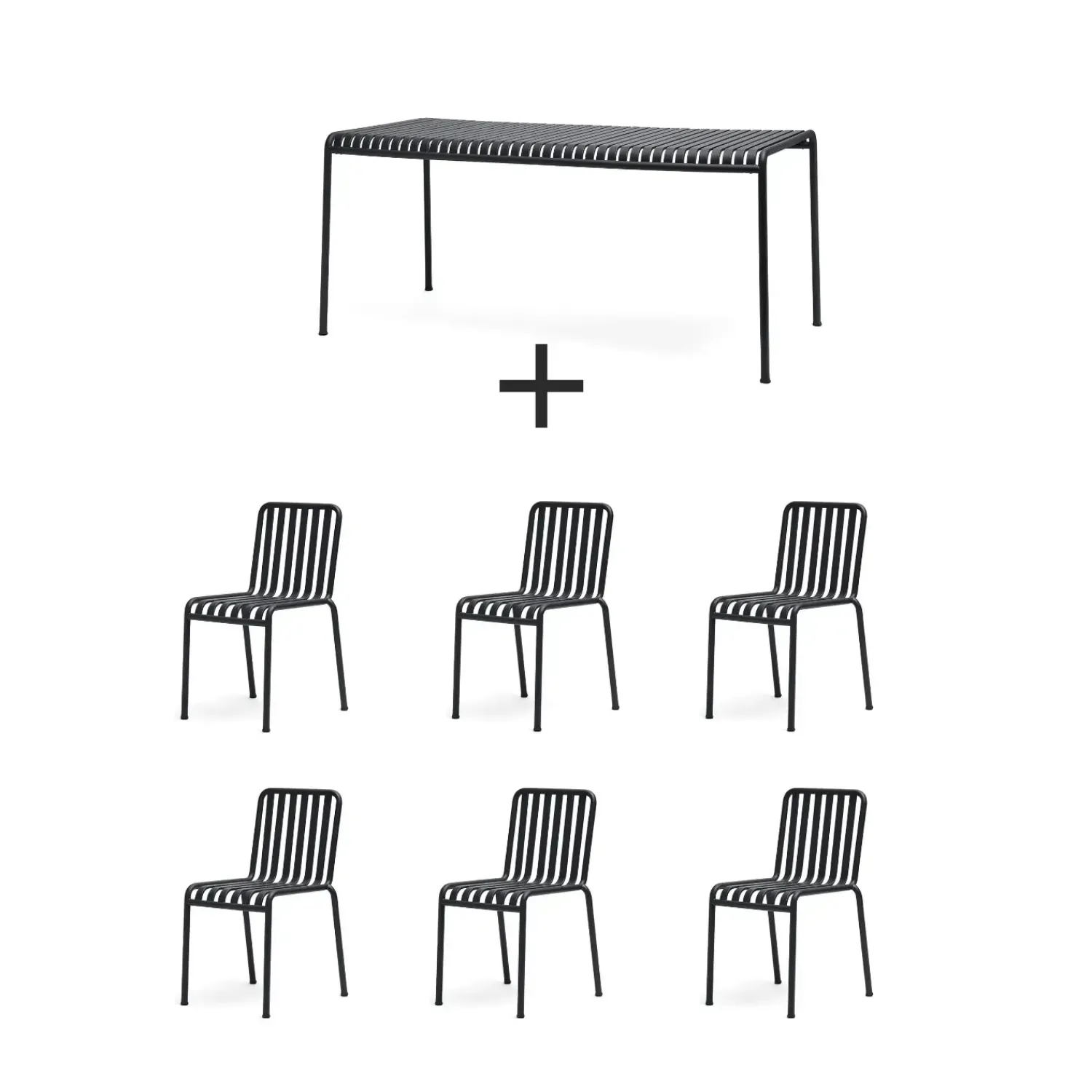 Skab et stilfuldt og funktionelt udendørs rum med dette eksklusive Palissade-sæt fra HAY. Bestående af et bord og seks stole tilbyder dette møbelsæt en perfekt balance mellem æstetik og anvendelighed, ideelt til både private haver og kommercielle områder. Det enkle og strømlinede design, skabt af de anerkendte designere Ronan og Erwan Bouroullec, passer smukt ind i ethvert udendørsmiljø.