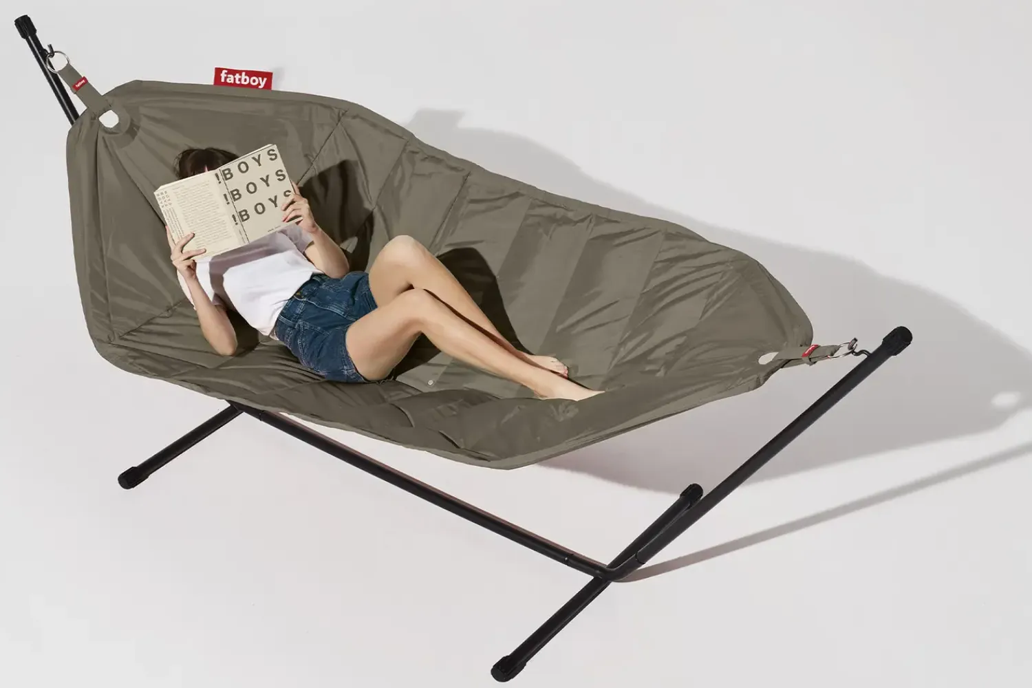 Hængekøjen er lavet af polyester med et metalstativ. Den taupe/brune farve og det sorte stativ passer ind i de fleste udendørsmiljøer. Hvis du ønsker at skabe en afslappende oase i din have, er denne hængekøje en god løsning.