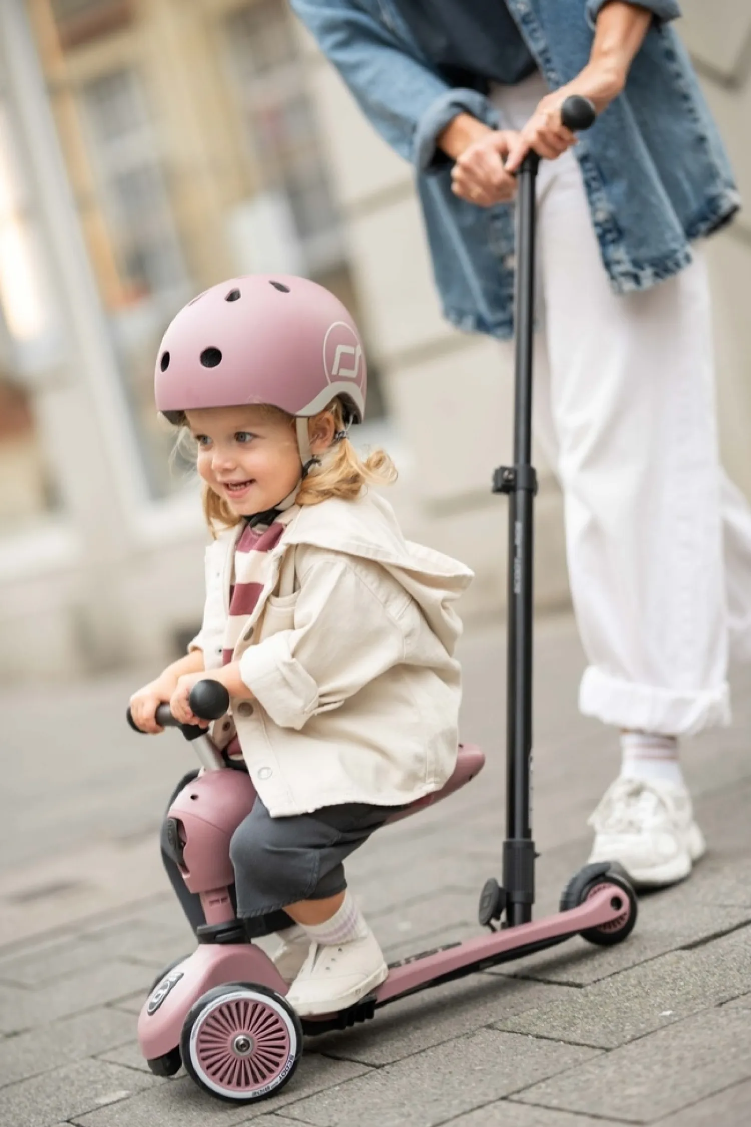 Scoot and Ride Highway – Cykelhjelm – Rosa – Wildberry – Str. 45-51 cm kombinerer et trendy retrolook med vigtige sikkerhedsfunktioner til små eventyrere.