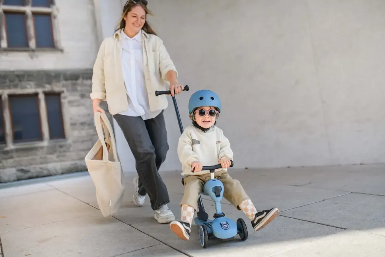 Bemærk venligst, at Highway Kick 1 Push and Go kun må skubbes af voksne. Hæng ikke tasker, rygsække eller indkøbsposer på stangen. Vær også opmærksom på, at barnet ikke må køre alene, mens skubbestangen er fastgjort til fodbrættet. Det er ikke muligt at montere stangen på eksisterende modeller af Highway Kick 1 eller Highway Kick 1 Lifestyle børnescootere.