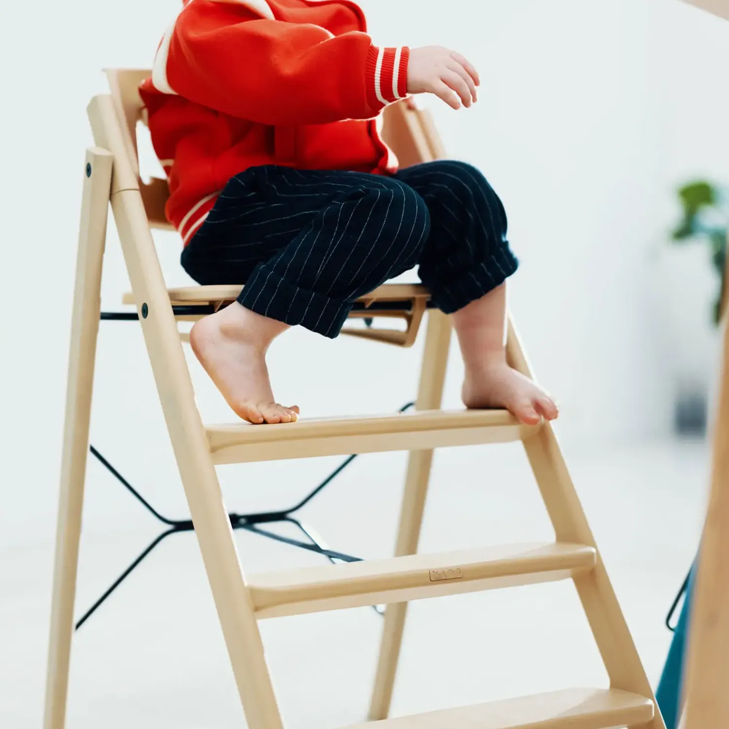 De indbyggede trin gør det trygt for dit barn at klatre op og ned selv. Sædehøjden på 56 cm passer til standard bordhøjder, og den ergonomiske siddestilling sikrer god støtte gennem alle udviklingstrin.