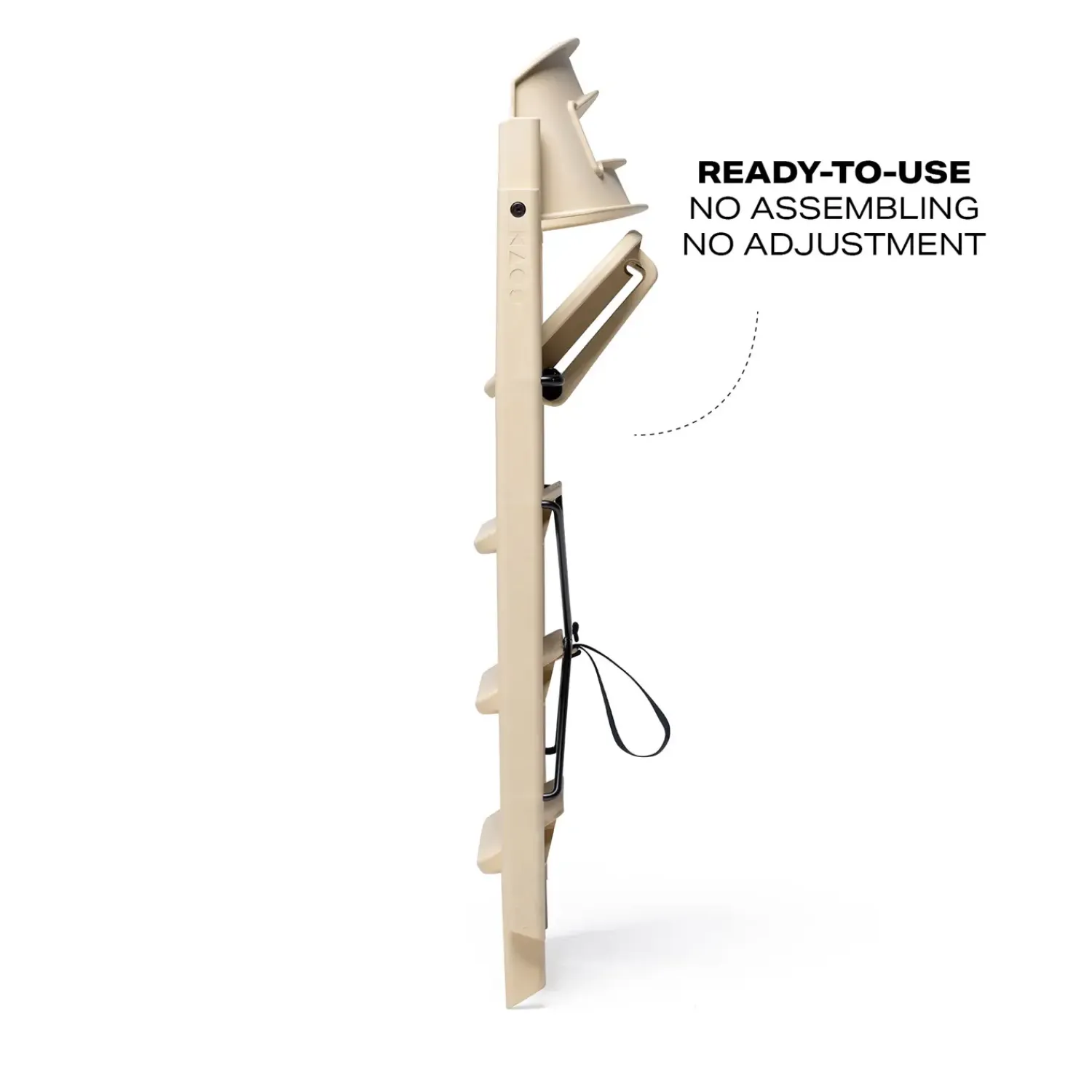 Den sandfarvede højstol kan nemt klappes sammen, når den ikke er i brug. Det gør den ideel til mindre hjem eller når du har brug for ekstra plads. Bemærk, at stolen kan have en let hvid skygge på overfladen.