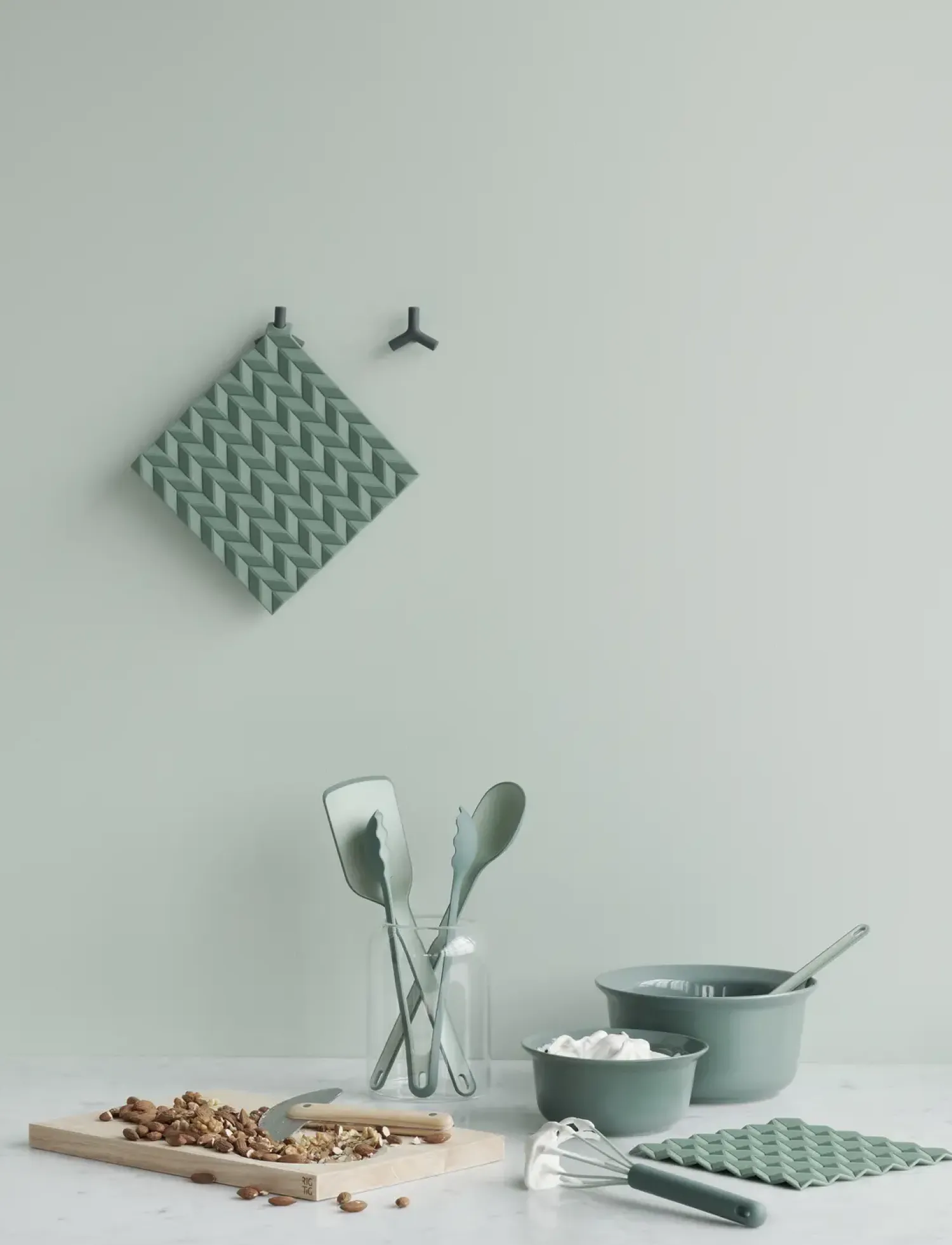 HOLD-ON er moderne grydelapper og bordskånere i ét. De er designet af Søren Refsgaard, der har ladet sig inspirere af den japanske origami foldeteknik. HOLD-ON grydelapper er fremstillet i silikone, der tåler op til 230 °C varme. Undgå at brænde fingrene – grydelappernes struktur sikrer et godt greb om gryderne, og så er de endda mere varmeisolerende end konventionelle stofgrydelapper. Giv dem en tur i opvaskemaskinen, hvis de er blevet fedtede.