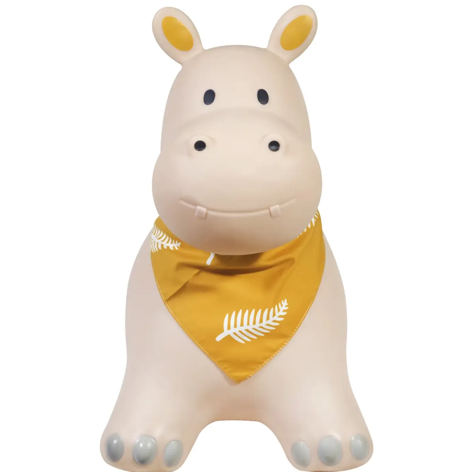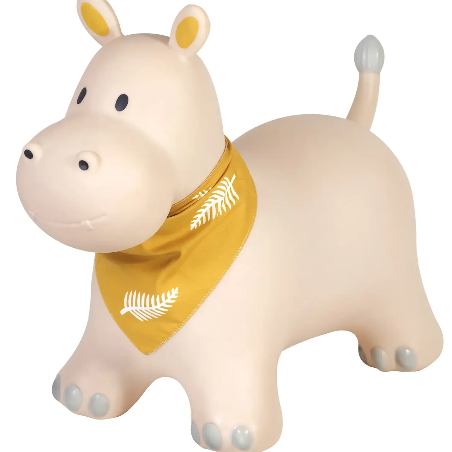 Dette hoppedyr er velegnet til både indendørs og udendørs brug, så dit barn kan lege i stuen eller i haven. Den medfølgende pumpe gør oppustningen hurtig og nem. Materialet er robust nok til daglig brug, og den gule farve med bandana giver et legende udtryk.
