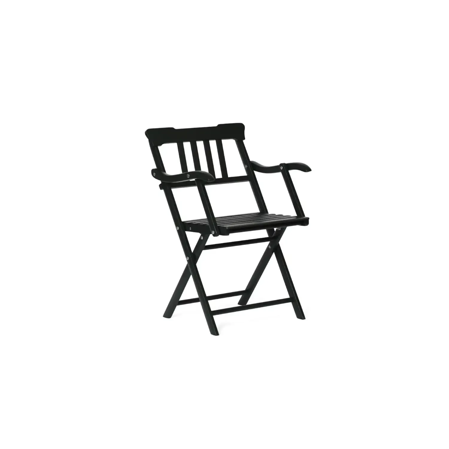 Skovshoved Møbelfabrik – Humlebæk Havestol, Sort er en elegant havestol med et romantisk touch. Designet er inspireret af havemøbler fra 50’erne, hvilket giver stolen en nostalgisk og tidløs charme. Den kan nemt klappes sammen, hvilket gør opbevaring om vinteren til en leg.