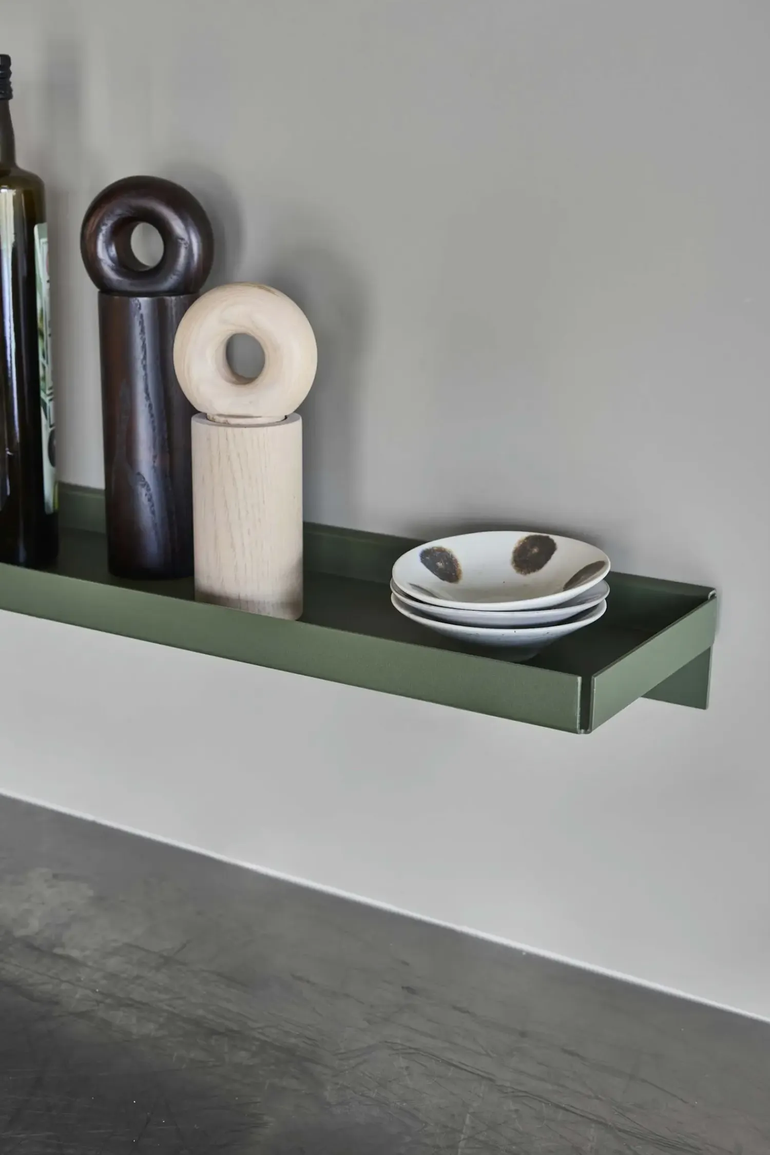 Med en længde på 50 centimeter og en dybde på 16 centimeter har du god plads til at style dine yndlingsting. Den dæmpede grønne farve passer naturligt ind i forskellige rum, og den enkle form gør hylden let at integrere i din indretning.