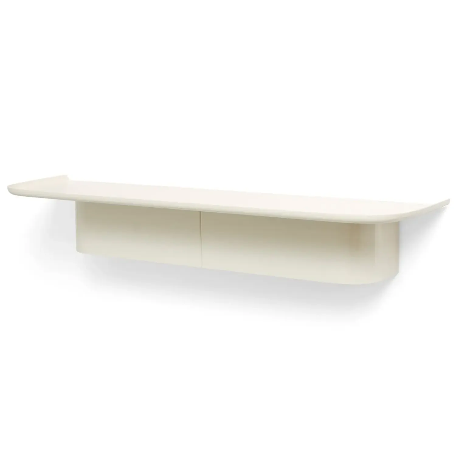 Den cremehvide overflade er skabt med pulverlakeret aluminium, som gør hylden modstandsdygtig og nem at vedligeholde. Materialevalget sikrer, at hylden holder sig pæn, selv i rum med høj fugtighed som køkken og badeværelse.