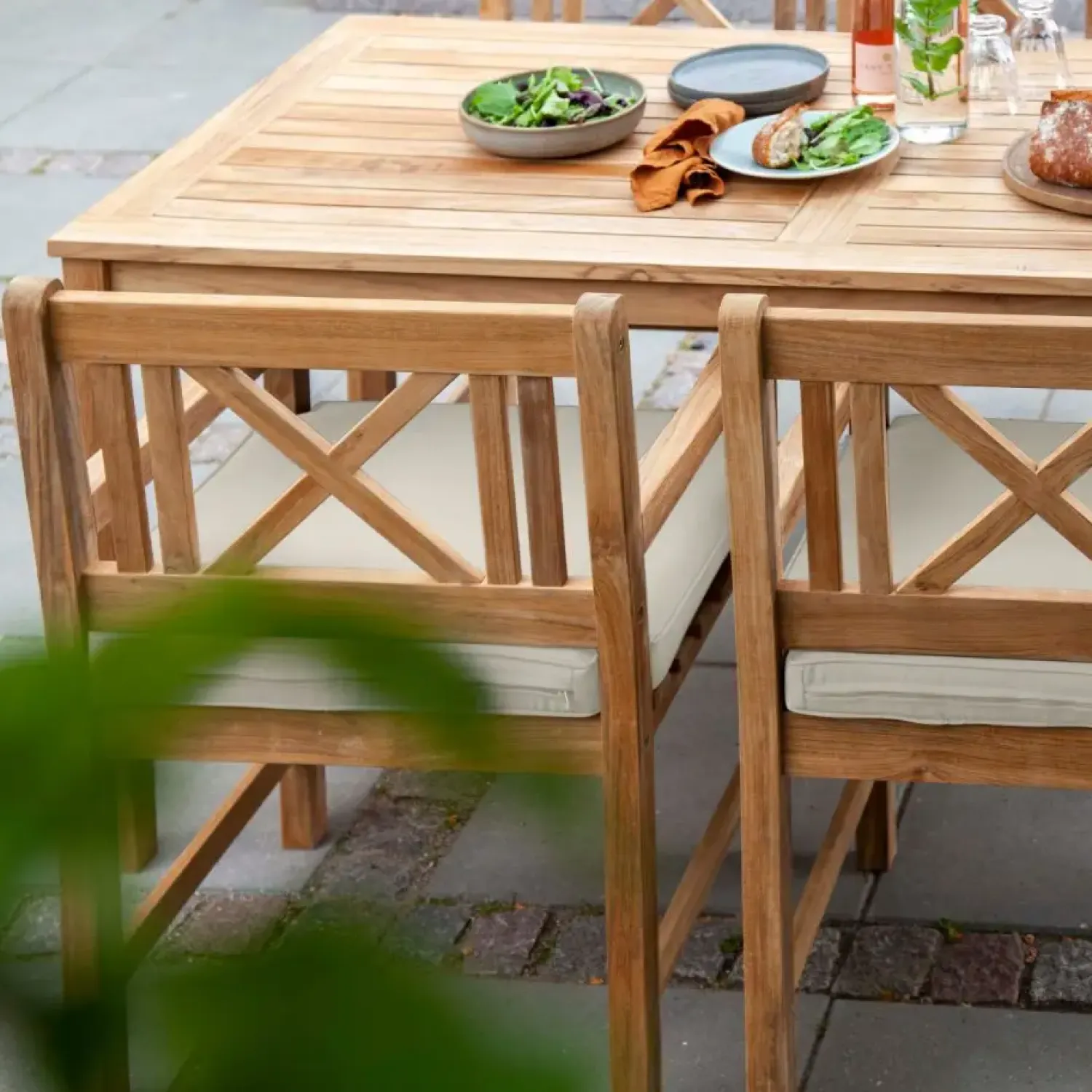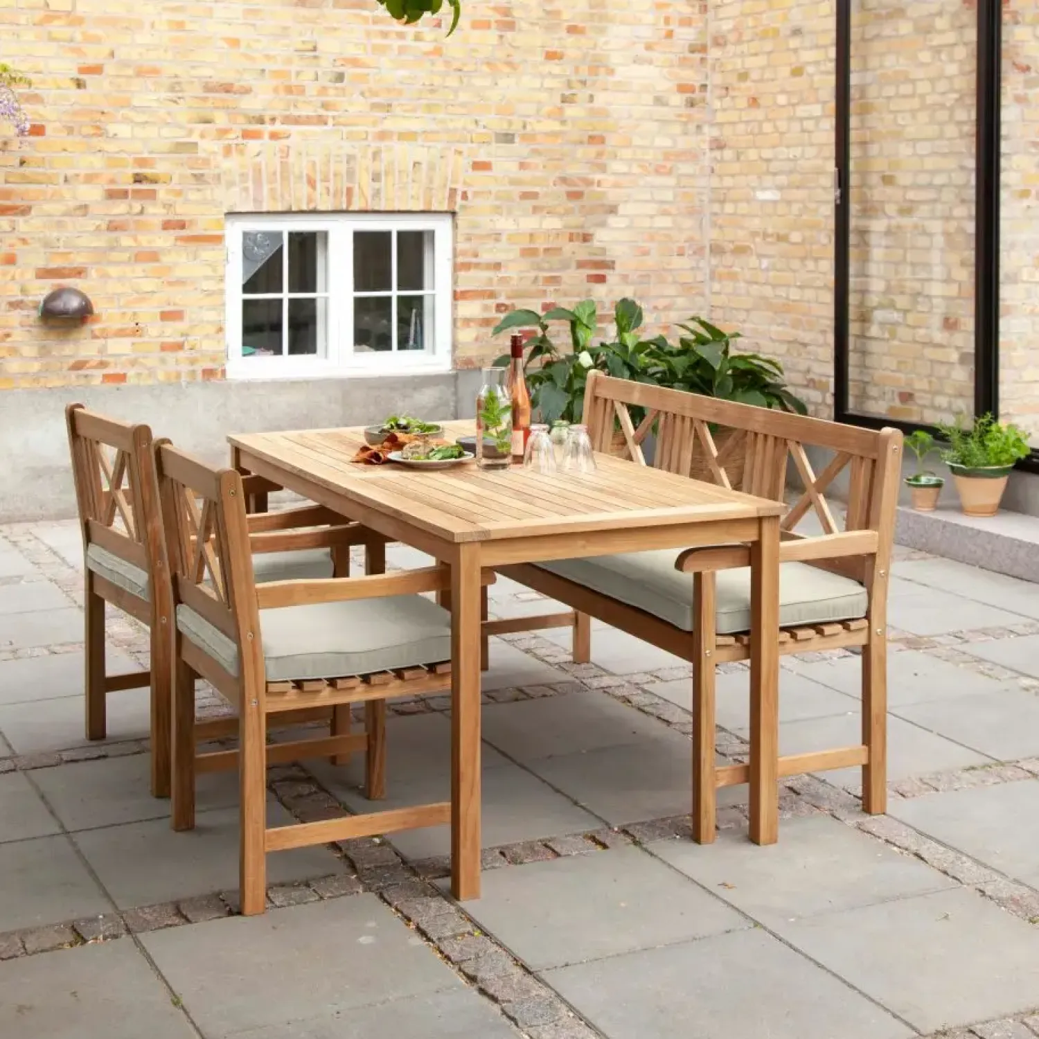 Mål: 53×151 cm til bænken og 53×59 cm til stolene