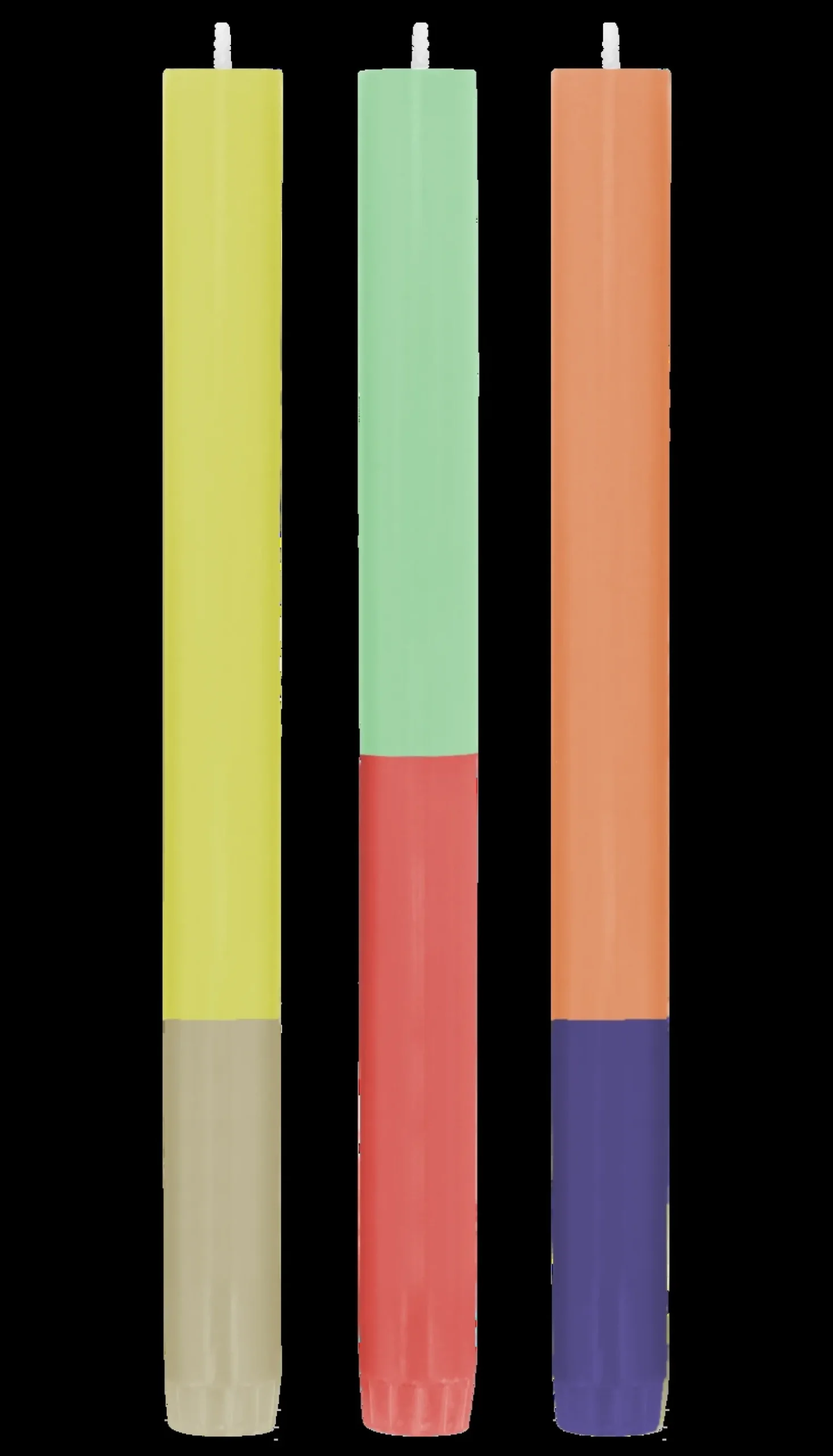 Disse unikke Ibiza stearinlys bringer farve ind i dit hjem. Hvert lys er omhyggeligt håndhældt lag for lag med vegansk stearinvoks og farvet med økologiske farvestoffer. Denne fremstillingsmetode giver hvert lys et distinkt farveblokerende design, der tilfører et levende touch til indretningen.