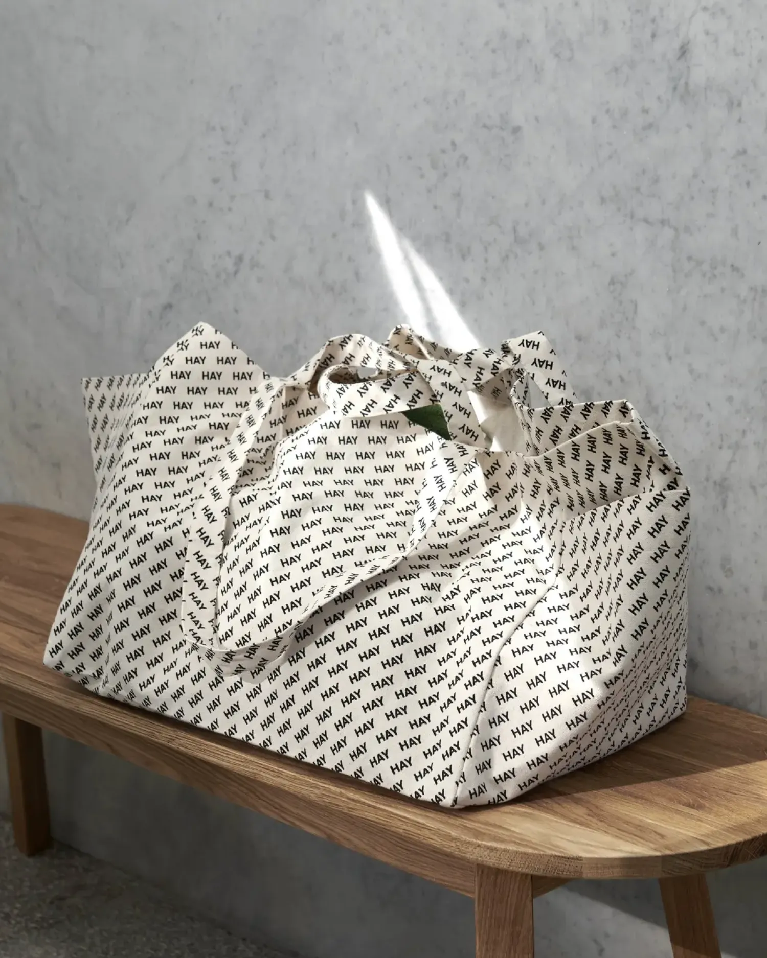 De generøse mål giver dig frihed til at pakke alt det nødvendige til weekendturen eller de større indkøb. Det karakteristiske HAY-logomønster tilfører et stilrent udtryk til den praktiske taske.