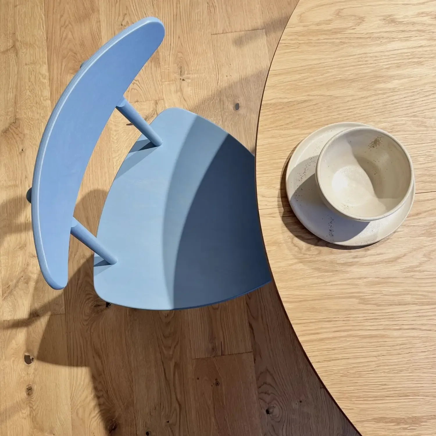 J107 Stolen er designet af Poul M. Volther i 1950’erne under hans tid som leder af FDB Møblers tegnestue. Stolen forener design med funktionalitet i en enestående skulpturel form. Vi har fundet tilbage til de originale maskiner fra 50’erne. Stolene produceres således på de selv samme maskiner, som blev udviklet specielt til J107 og de andre FDB stole. Stolen er lavet af nøje udvalgt bøgetræ, der udstråler naturlig skønhed. Naturmaterialet skaber et unikt møbel, hvor hver stol vil være sin egen i træets åretegninger og struktur. Linolien som giver stolen sin smukke farve laves i Danmark hos den sønderjyske virksomhed Linolie & Pigment. Her værnes der om det gamle håndværk, og olien fremstilles ud fra traditionelle teknikker og gode råvarer,