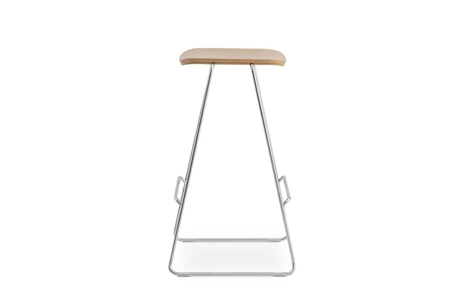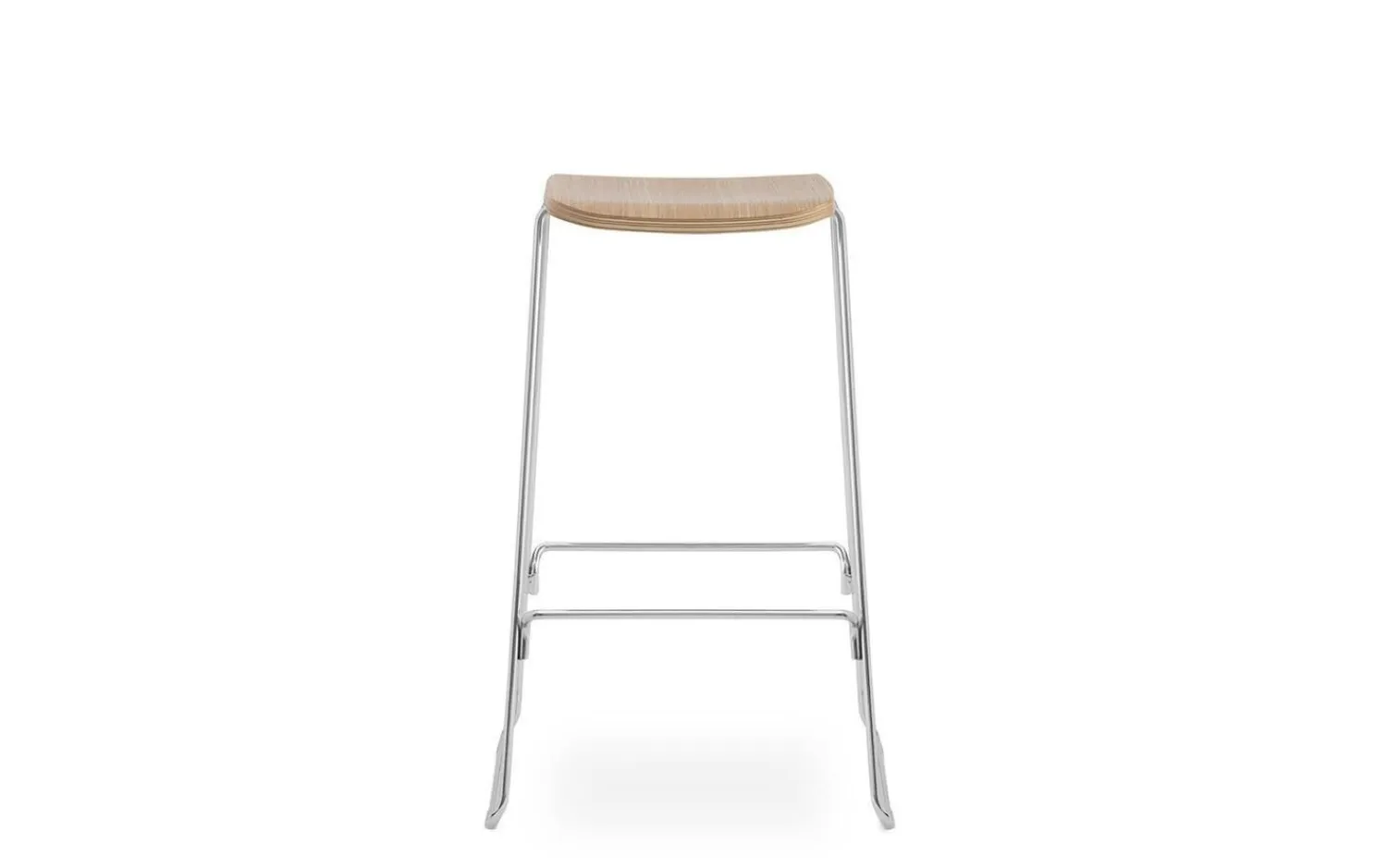 Barstolen fås med og uden ryglæn, så du kan vælge den version, der passer til dit rum og dine præferencer. Den er designet af Iskos-Berlin for Normann Copenhagen og har et fladt, rektangulært sæde med slanke metalben i A-form samt en integreret fodstøtte.