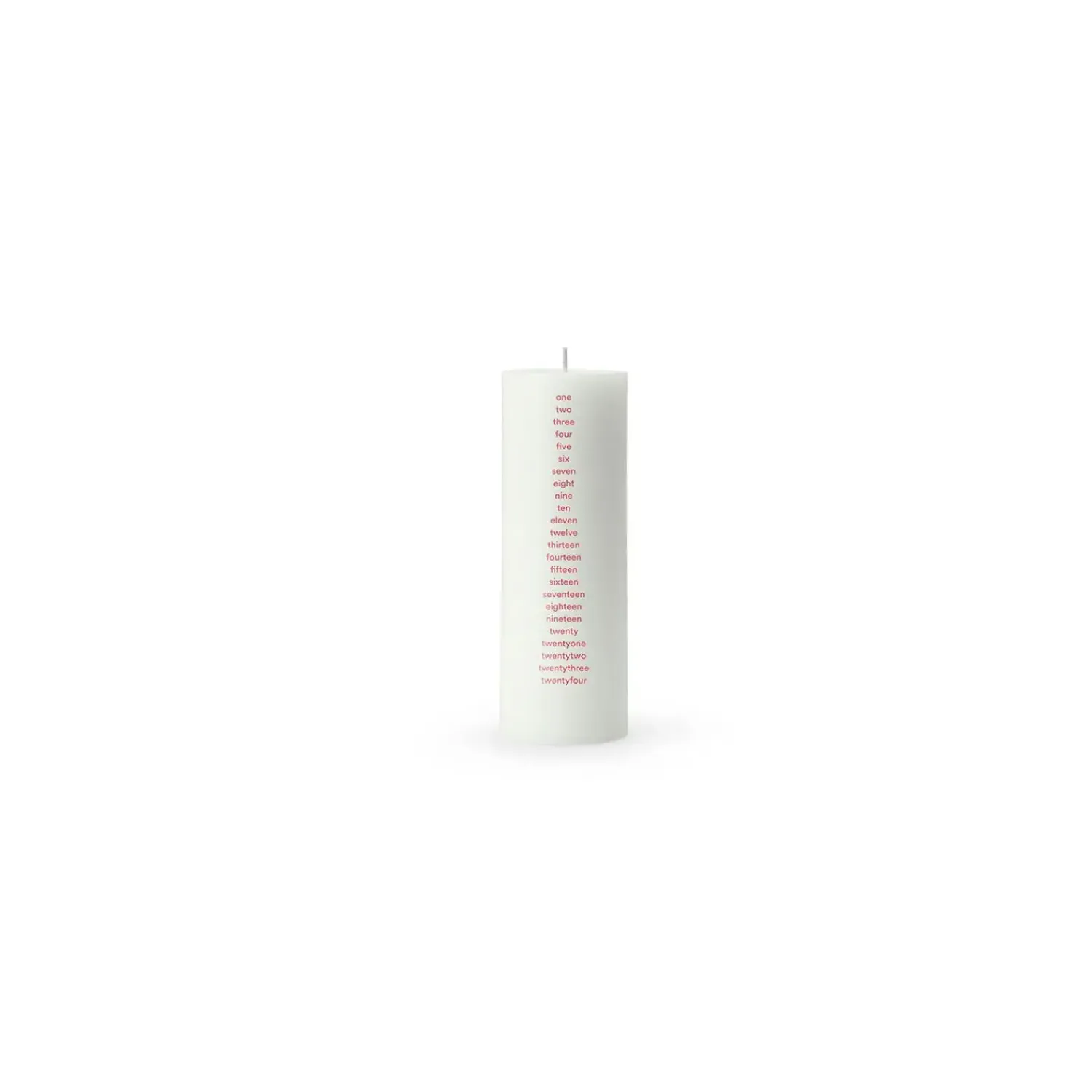 Dette kalenderlys fra Normann Copenhagen giver dig hele 110 timers brændetid. Fremstillet af 100 % ren paraffinvoks sikrer det en jævn og stabil flamme gennem hele december måned. Den lysegrønne farve med kontrasterende tal skaber en rolig stemning.