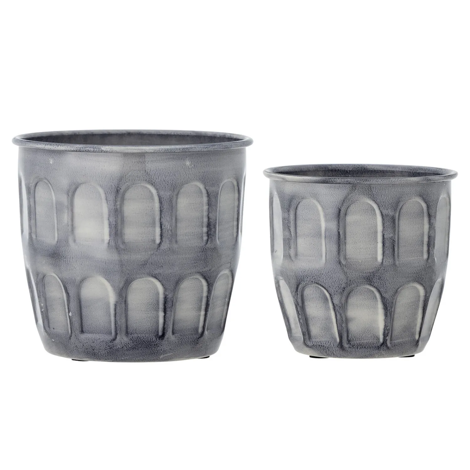 Creative Collection’s Kally urtepotteskjulere bringer et strejf af elegance til dine grønne oaser. Dette sæt med to potter i grå metal med et dekorativt præget mønster og en skinnende, tekstureret overflade giver dig mulighed for at skabe en harmonisk og indbydende atmosfære i dit hjem. Den bløde grå nuance og det kunstneriske design komplementerer en bred vifte af indretningsstile, mens metallets holdbarhed sikrer lang levetid.