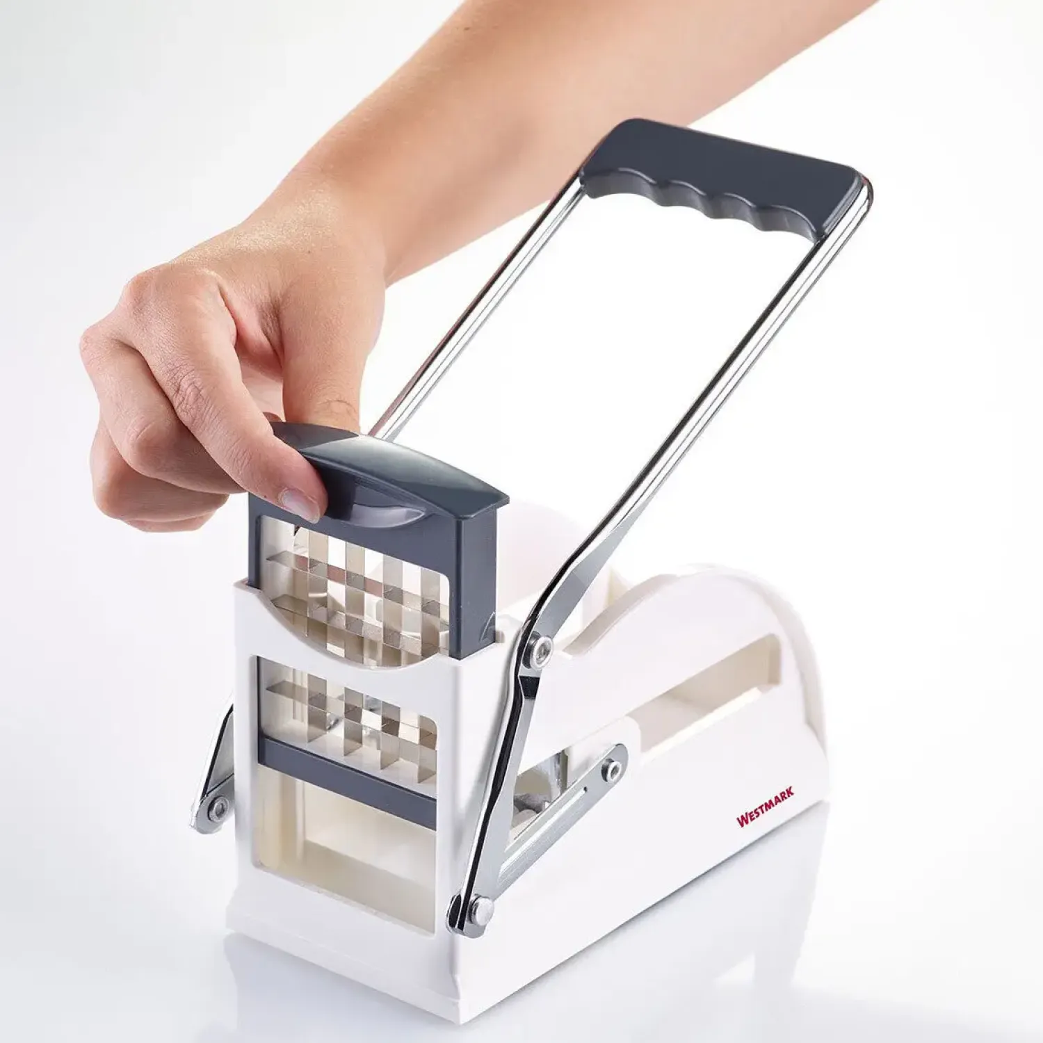 For den travle hjemmekok eller madelsker er denne kartoffelskærer en vigtig hjælper. Den reducerer markant tiden brugt på manuel skæring i køkkenet og er designet til at give ensartede resultater, selvom brugerens teknik kan påvirke det endelige udkomme. Uanset om du forbereder hjemmelavede pommes frites, juliennekarrotter til en salat eller frugt til en dessert, hjælper skæreren med at udføre opgaven hurtigt og effektivt. Den kompakte størrelse på 240 x 85 x 110 mm gør den nem at opbevare, selv i mindre køkkener. Konstrueret af holdbare materialer som plast og rustfrit stål, og med en 5-års garanti og BPA-fri konstruktion, kan du være tryg ved kvaliteten og sikkerheden af dit nye køkkenredskab. Westmark – Kartoffelskærer – Easy Stix kombinerer således effektivitet, holdbarhed og sikkerhed i ét praktisk redskab, der er essentielt for enhver madelsker. Med dens evne til at håndtere forskellige typer af fødevarer og tilbyde varierende skærestørrelser, bliver den hurtigt en favorit i køkkenet, der sparer tid og energi ved daglig madlavning.
