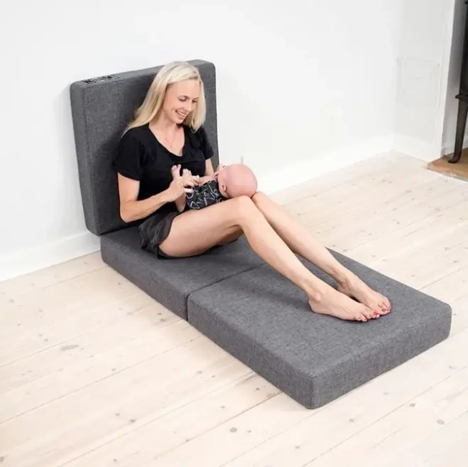 Mål for Single madras med grå knap: se tegning