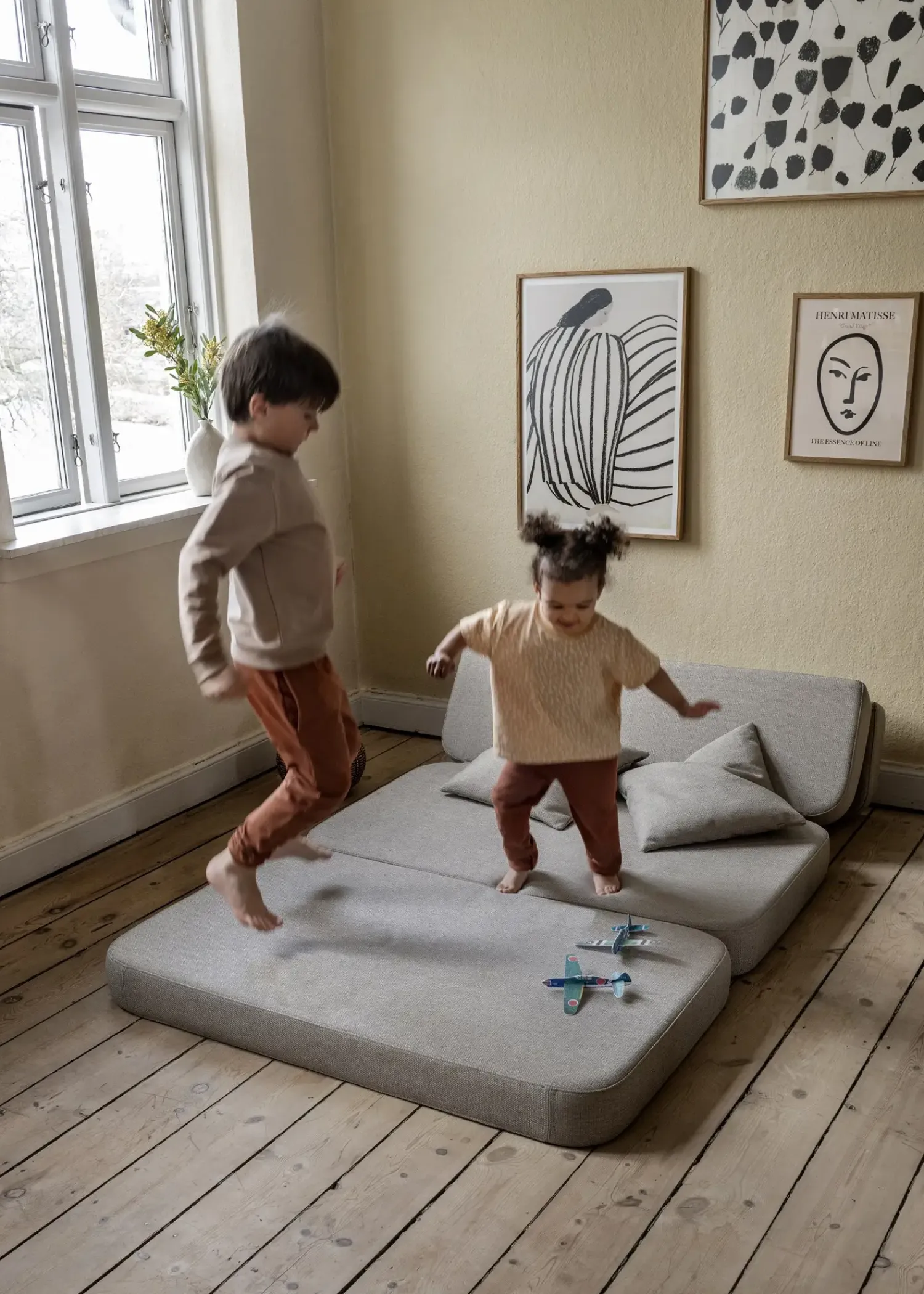 Folded ud som en gæsteseng/legeplads: H: 12 cm W: 120 cm L: 210 cm