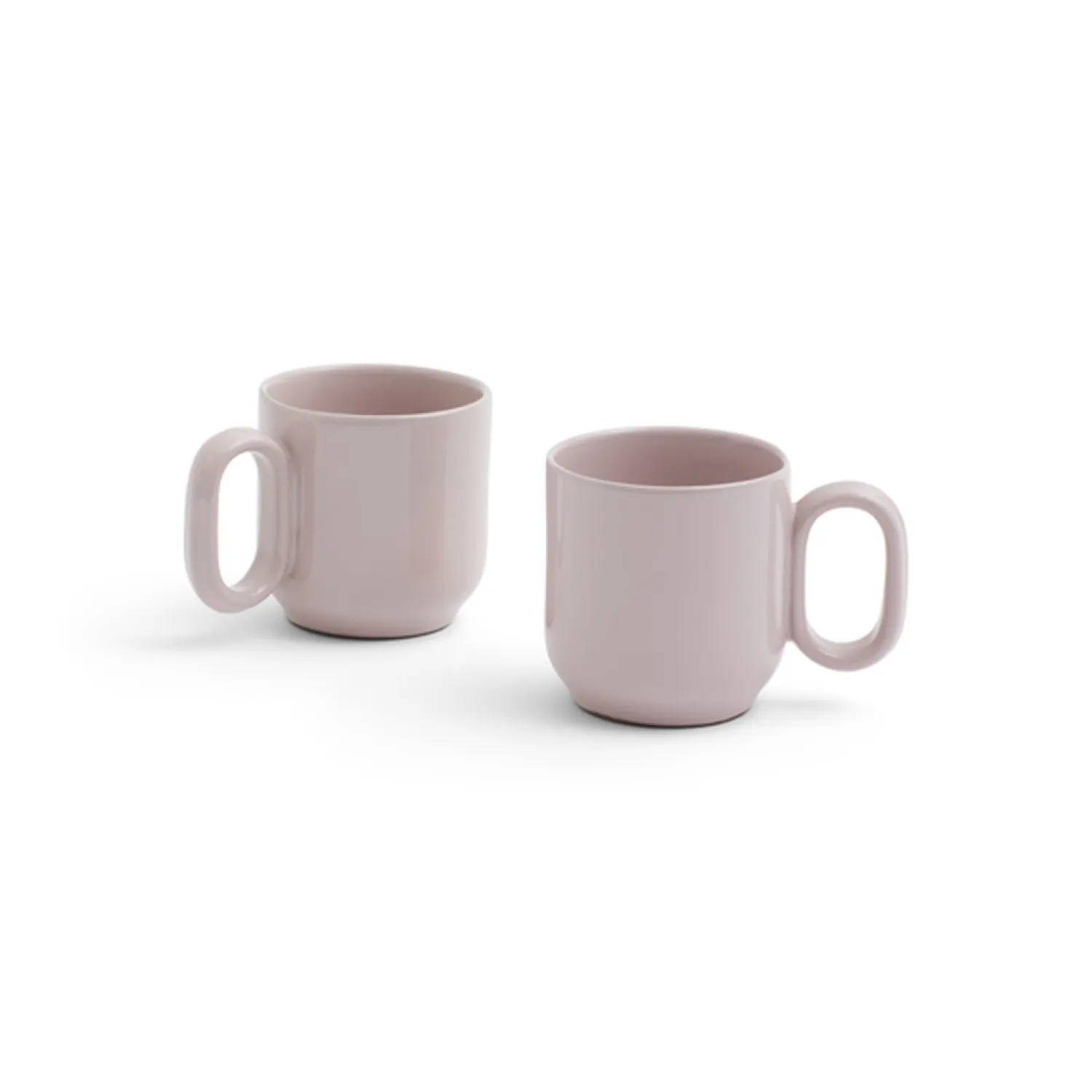 Håndlavede terrakottakopper med glasering i pink nuancer. Sættet indeholder to ens kopper, hver 8,4 cm høje og 8 cm brede. Fremstillet i Portugal.