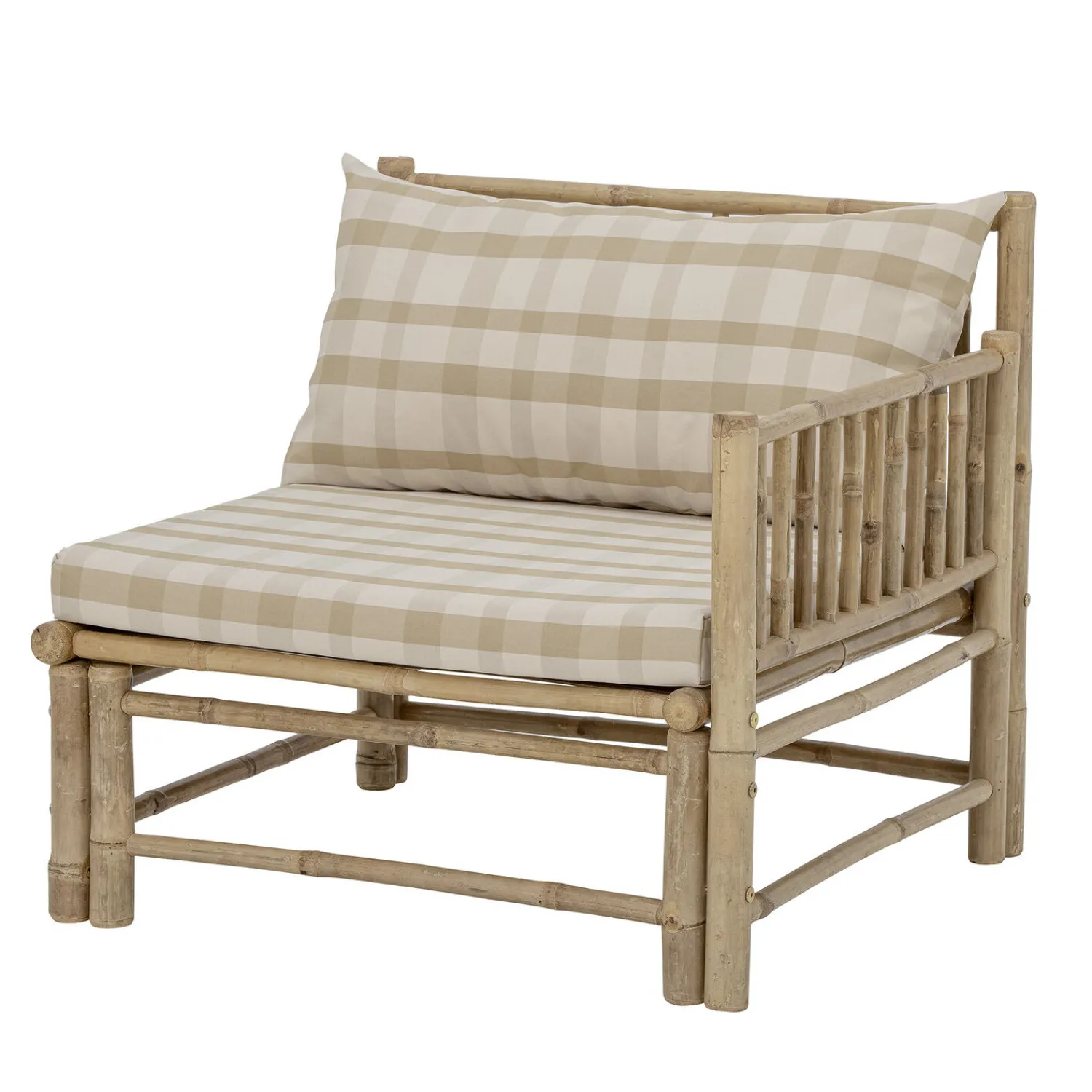 Korfu Module Sofa Right Corner fra Bloomingville er en del af Korfu-serien, hvor du kan mikse og matche modulerne og lave din egen udendørs sofa baseret på dine behov! Serien er lavet af bambus for at opnå den organiske, hyggelige og hjemlige følelse af naturmaterialet. Designet er fantastisk med et skandinavisk touch med puder lavet af polyester i smukke bløde farver. Modulerne er nemme at samle med velcro ved hvert modul. Lige perfekt til terrassen, have vores lidt orangeri.