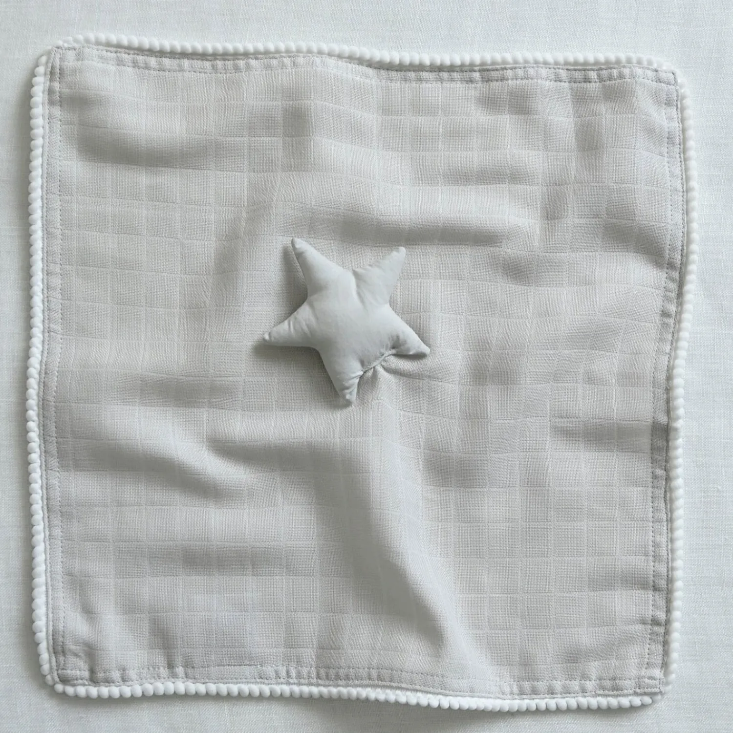 Fremstillet af 100% økologisk bomuld tilbyder denne krammeklud en blød tekstur. Det tynde musselinstof giver en let fornemmelse. Ideel til vugge, klapvogn og på farten er den nem at holde ren. Den lyse grå farve passer ind i ethvert børneværelse og giver et roligt udtryk.