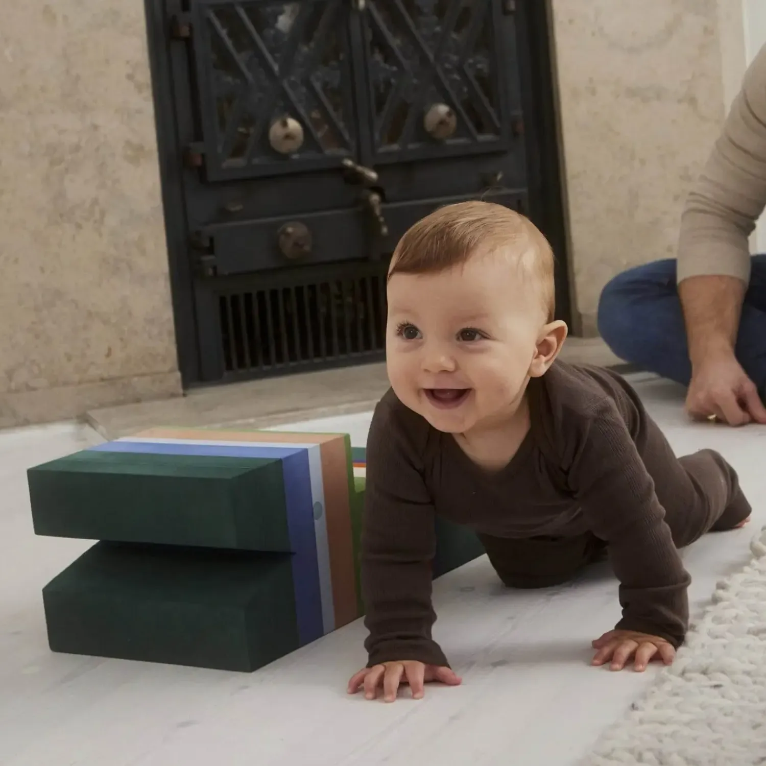 bObles Krokodille kommer i to størrelser, der begge inviterer til leg og bevægelse. Baby, tumling og barn vil elske det motorisk udfordrende krybdyr i rigtig mange år, når den udvikler sig fra sliske til stylter. For den helt lille baby kan den store Krokodille L vendes om på ryggen og bruges som sliske. Herfra kan mor og far nyde nærværet med deres lille ny, når baby ligger på maven og kigger op. Placeres bObles Kylling under Krokodillen kan den pludselig vippe og der åbnes op for endnu flere legeeventyr. For de kravlende babyer er trinene på Krokodille den perfekte første trappe, hvor der også kan trænes faldrefleks. De sjove aktiviteter stopper dog ikke her. Trappen bliver kun endnu mere underholdende, når tumlingen er kommet op at gå. Sæt tumlemøblet for enden af sengen som hjælp til selv at komme op – det styrker barnets selvtillid at mestre den slags discipliner, ligesom bObles Krokodille pynter i ethvert børneværelse med sit ikoniske og sjove design.bObles Krokodille er et tumledyr i EVA-skum, der både styrker barnets balance og koordination, når barnet kravler, går eller står og vipper på krokodillen. Farverne i Mountain-serien er inspireret af naturens storslåede farvespil. Med striberne på tværs er der plads til ekstra mange farver, der gør tumledyret sanseligt og inspirerende for barnet at lege med. Samtidig er farverne, såvel som tumledyrene, tidløse og har lang levetid.