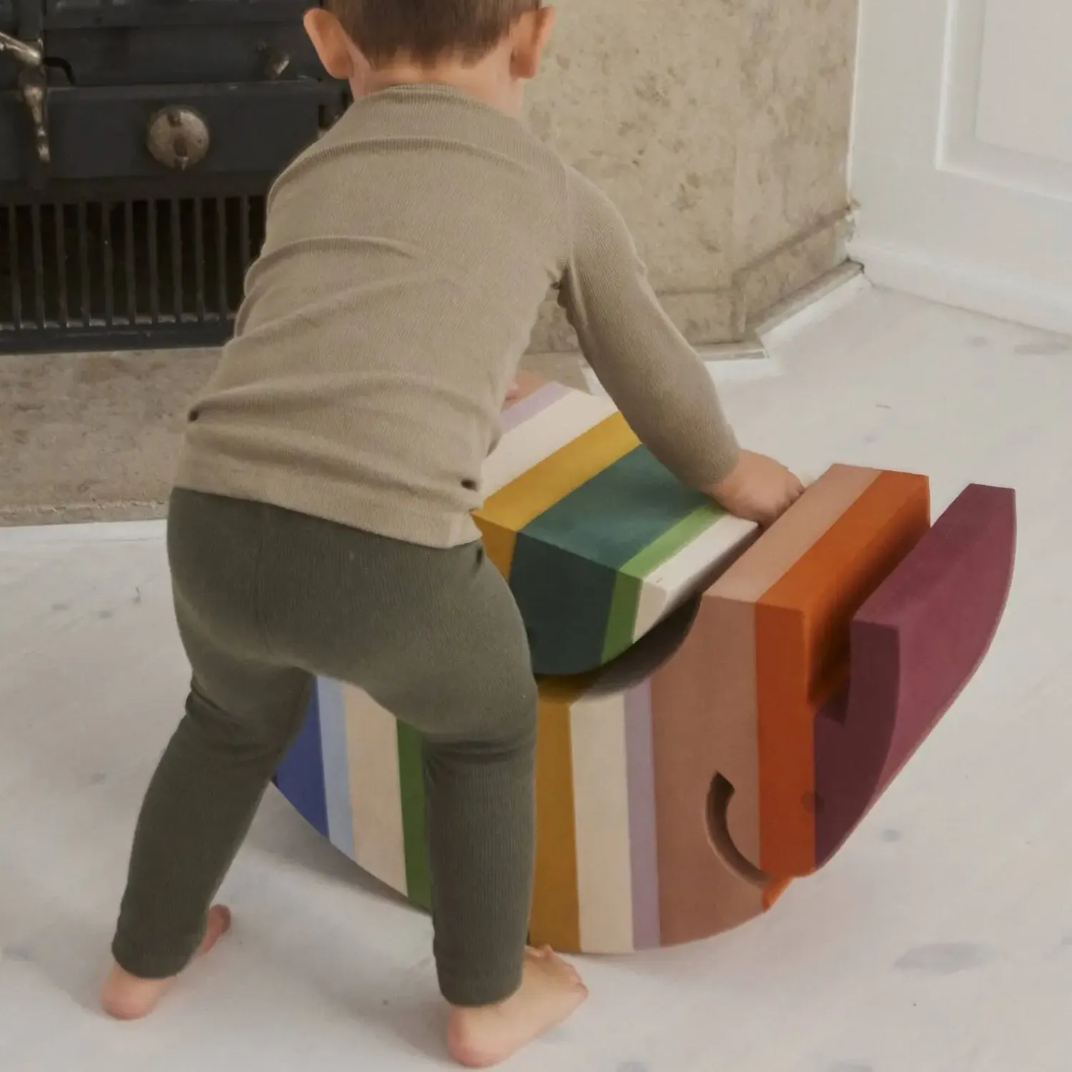 bObles Kylling har stribevis af legende funktioner. Den bliver nemlig familiens bedste ven, når baby skal til at ligge på maven. Kyllings buede overflade kan bruges som sliske, når baby skal styrke nakke og ryg. Den passer også ind i maven på den store bObles Elefant, som så kan bruges som vippe og styrke vestibulærsansen. En dejlig og rolig aktivitet med baby. Når barnet rammer tumlingealderen og er begyndt at sidde selv, er Kylling fantastisk til det kontrollerede vip. Tumlingen kan sidde på tumlemøblet og vippe frem og tilbage samt fra side til side med begge fødder solidt plantet på gulvet. Og når barnet er blevet sikker på benene, kan bObles Kylling bruges til at vippe stående. Også på et ben. bObles Kylling er et tumledyr i EVA-skum, det lette materiale gør det nemt for små børn at transportere den rundt og bruge den som alt fra trædesten til sædeforhøjer på en voksensol. Farverne i Mountain-serien er inspireret af naturens storslåede farvespil. Med striberne på tværs er der plads til ekstra mange farver, der gør tumledyret sanseligt og inspirerende for barnet at lege med. Samtidig er farverne, såvel som tumledyrene, tidløse og har lang levetid.