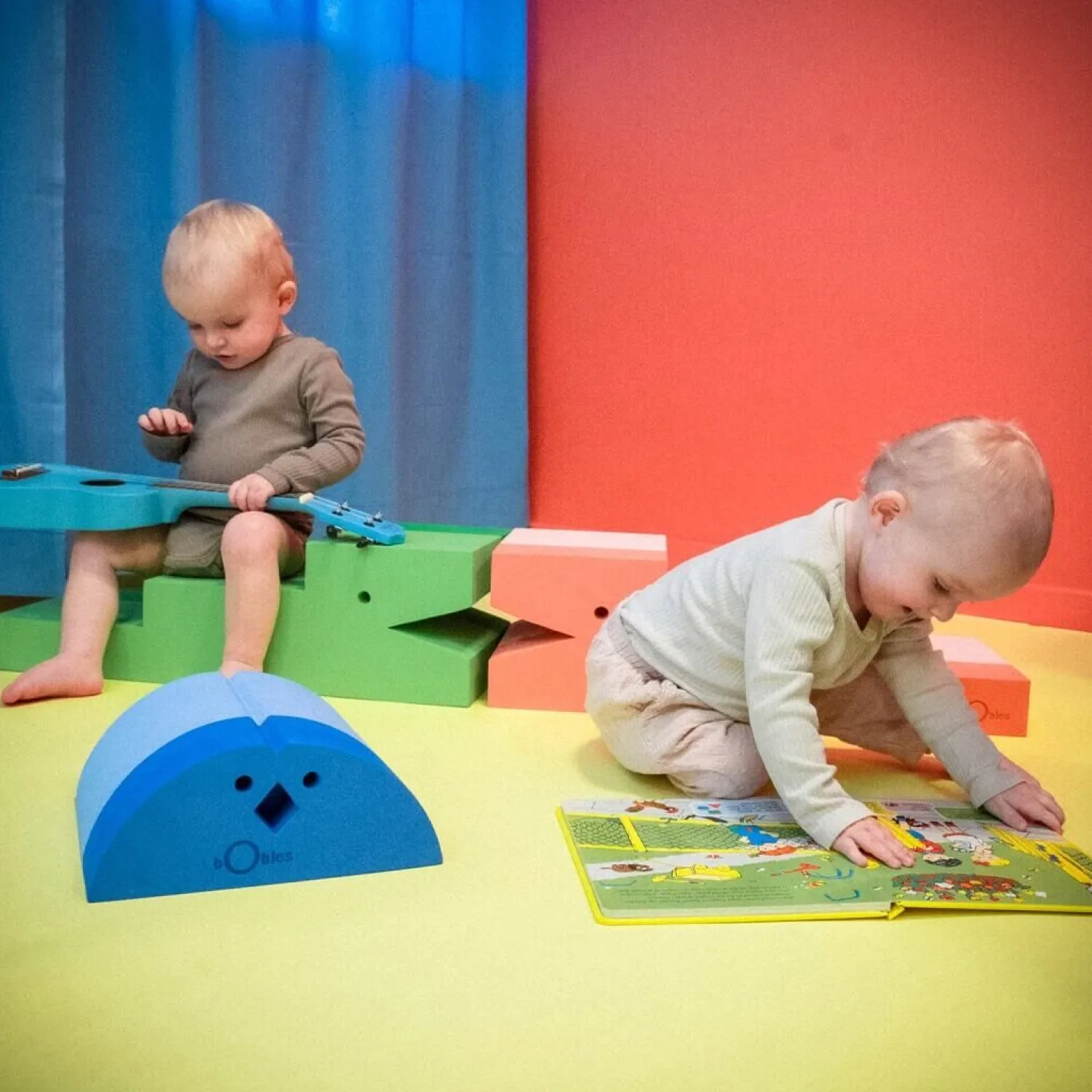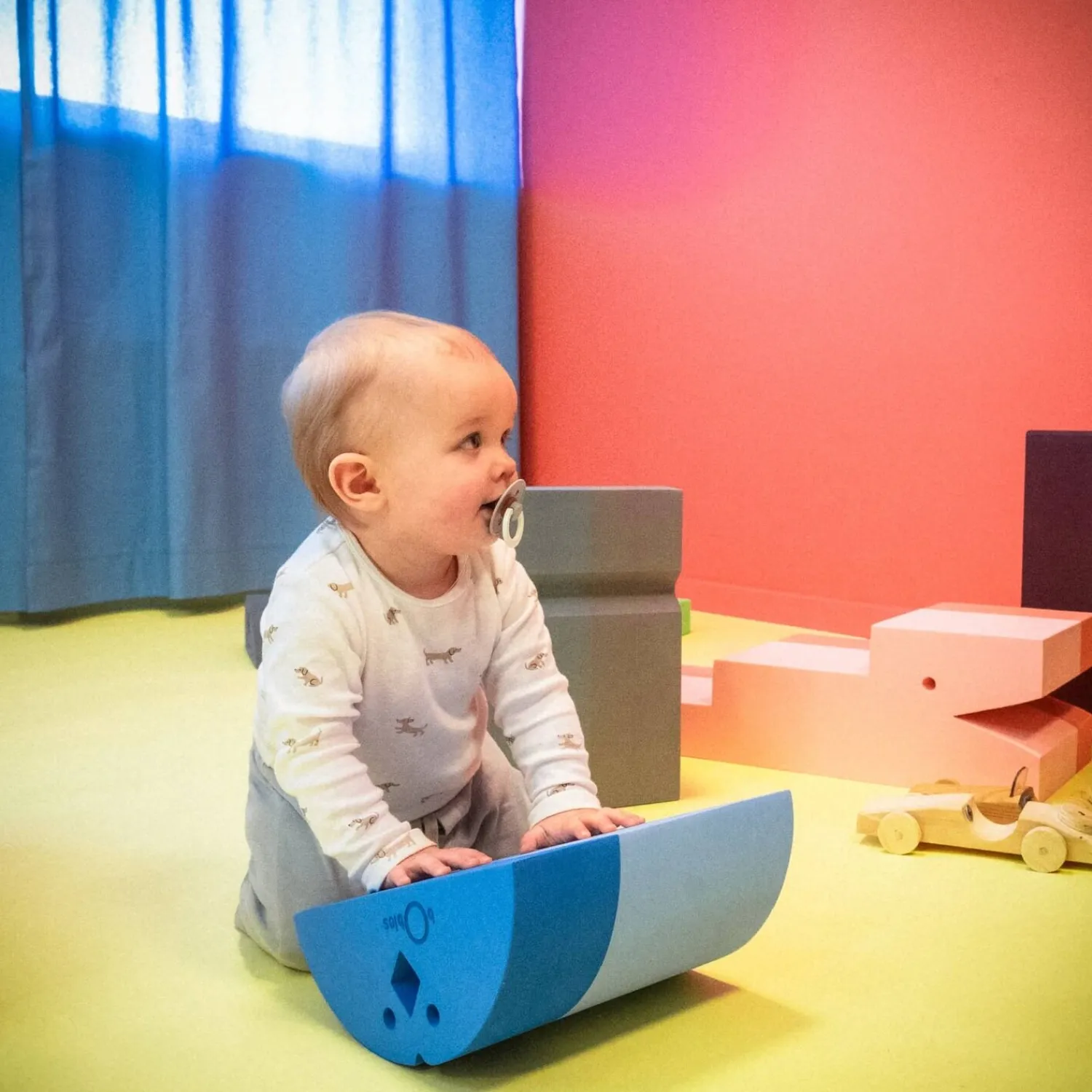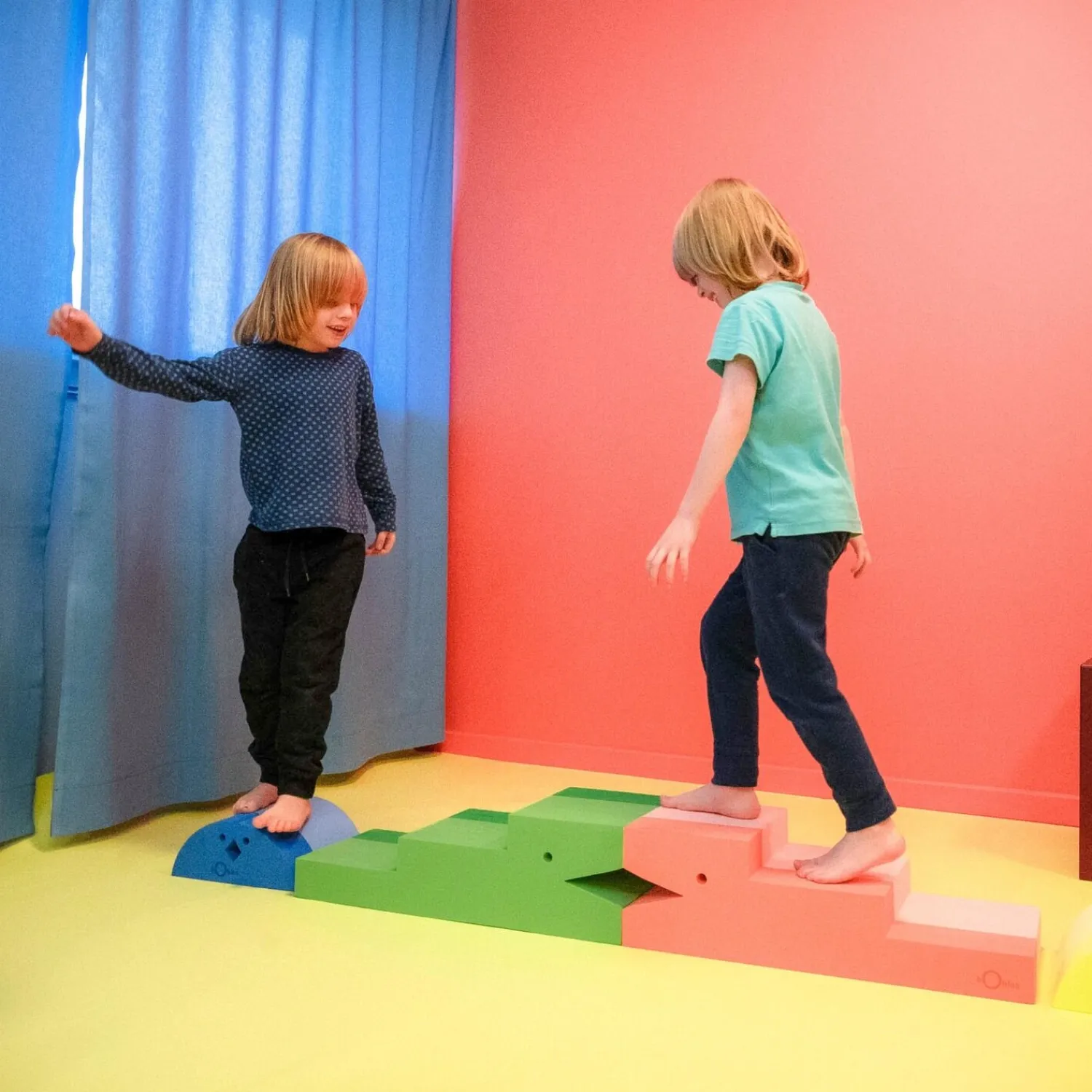 Kyllingen er designet til sjove og stimulerende indendørs aktiviteter, hvor bevægelse og læring går hånd i hånd. Farverne er inspireret af gymnastiksalens energi og bevægelsesfrihed, med et materiale, der er 60 % blå. Den lyseblå farve bringer liv til legeområdet uden at dominere rummet.