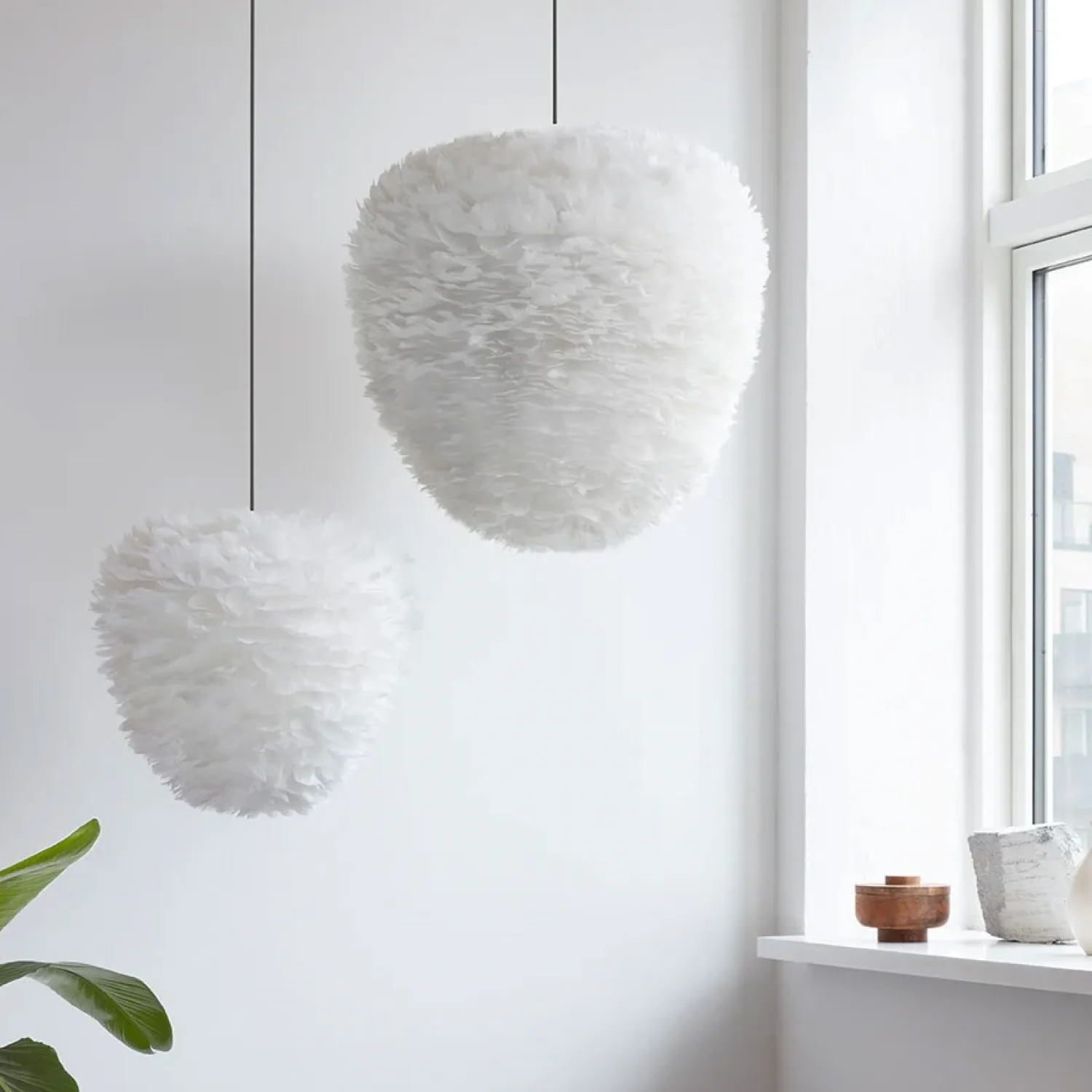Eos lampen er produceret af gåsefjer, der er blevet tilovers ved slagtning til fødevareindustrien. Gæssene er slagtet i overensstemmelse med EU-regulativer. Fjerene vaskes, koges, tørres og behandles inden de bliver brugt til at lave de flotte Eos lamper.