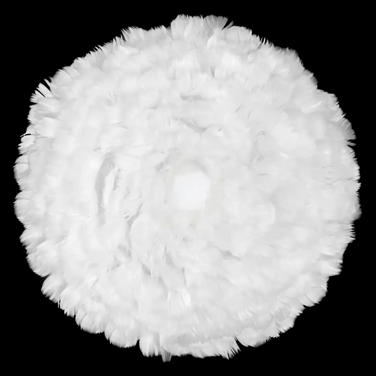 Eos Up lampe i hvid str. medium, der pynter smukt på væggen eller loftet i hjemmet. Perfekt til små rum, hvor den kan lyse flot op med sin bløde, varme belysning. En unik og håndlavet lampe, der er lavet af naturlige gåsefjer. Fjerene kan let rettes ud og støves af med en hårtørrer med afstand.