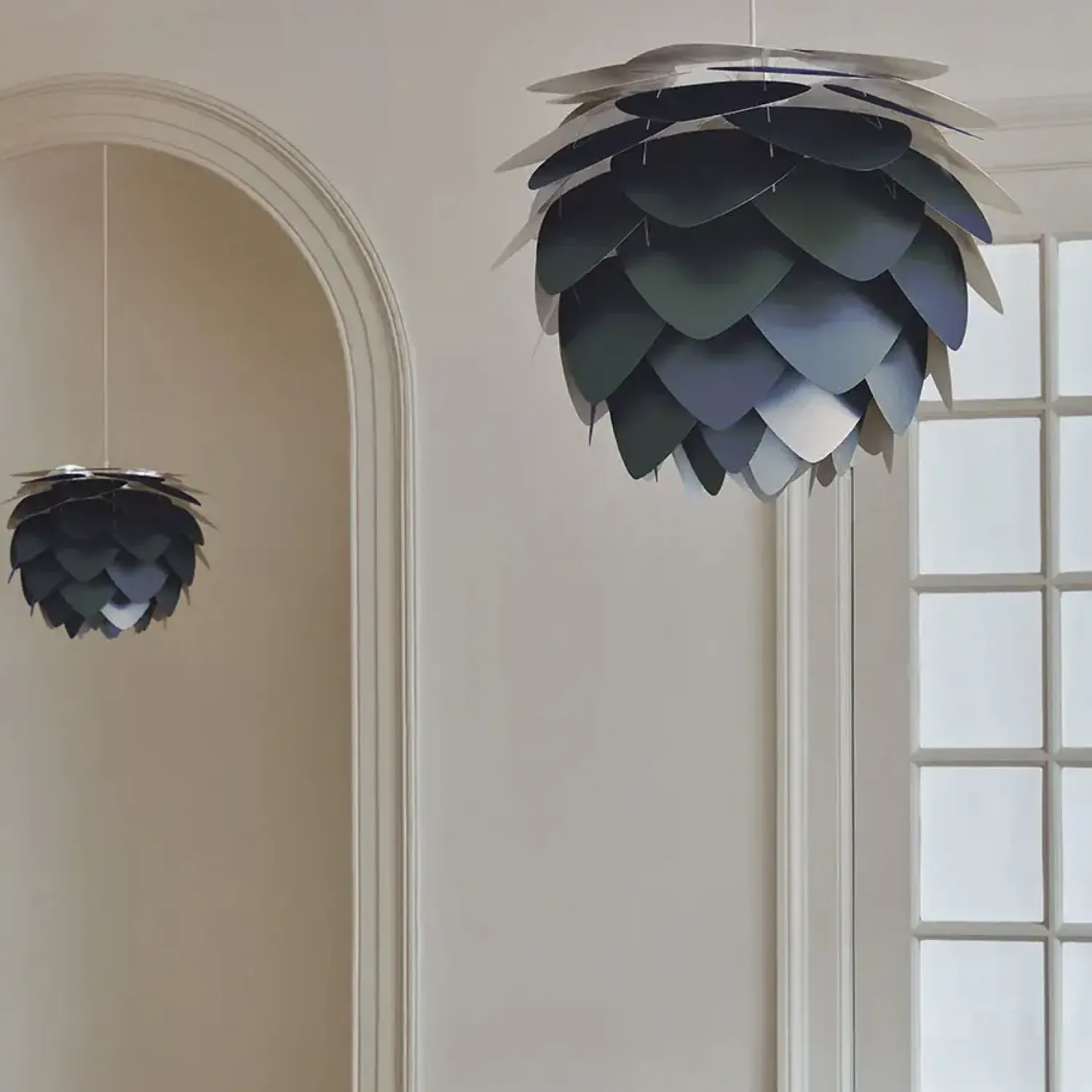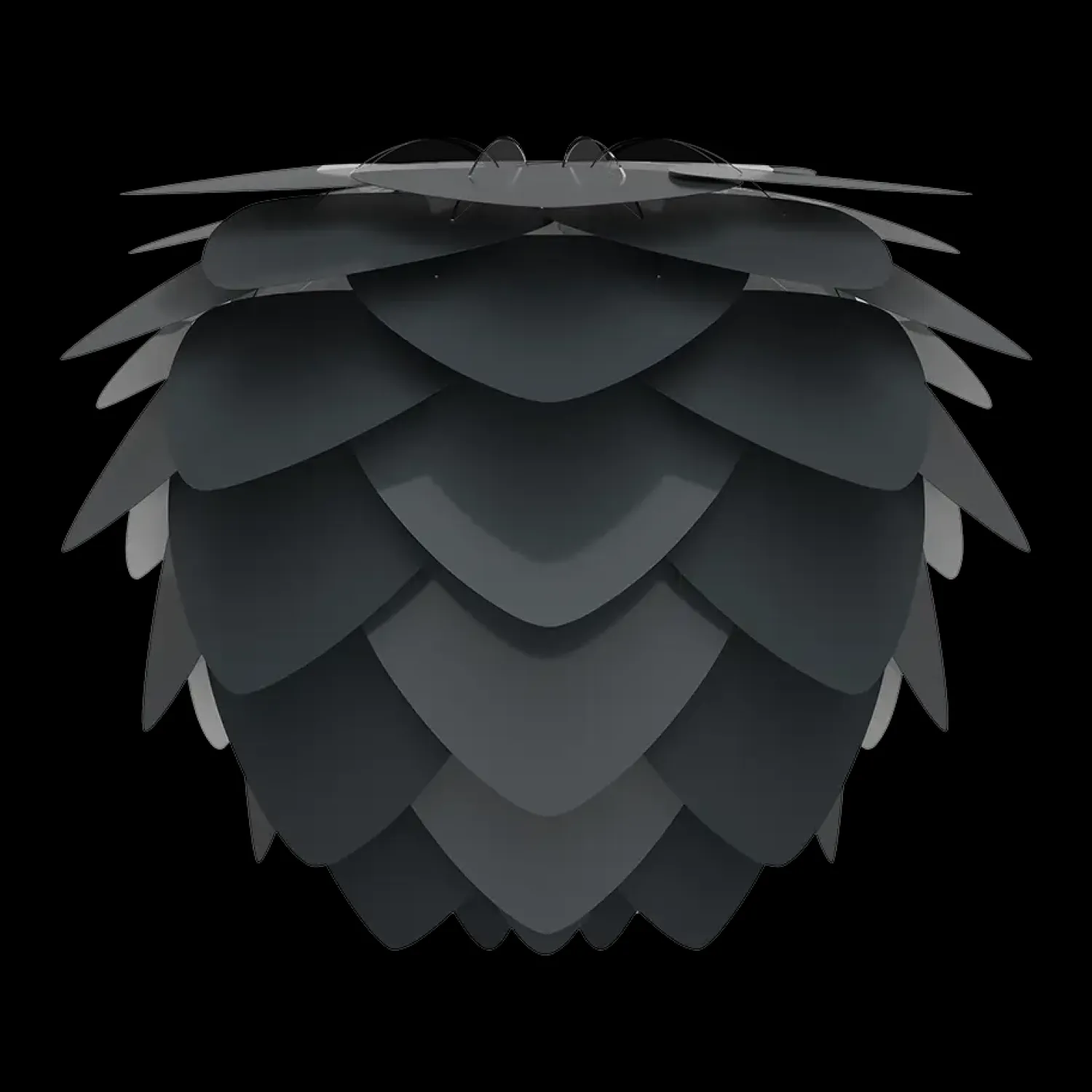 Den smukke kogle-formede Aluvia mini lampeskærm i antracit grå fra Umage er lavet med blade af aluminium, som giver lampen et let og robust udtryk på samme tid. Lampeskærmen giver dig mange muligheder i din indretning. Hæng fx lampen over dit spisebord eller i entreen – husk at tilkøbe . Eller brug den som gulvlampe med en eller som bordlampe med en .