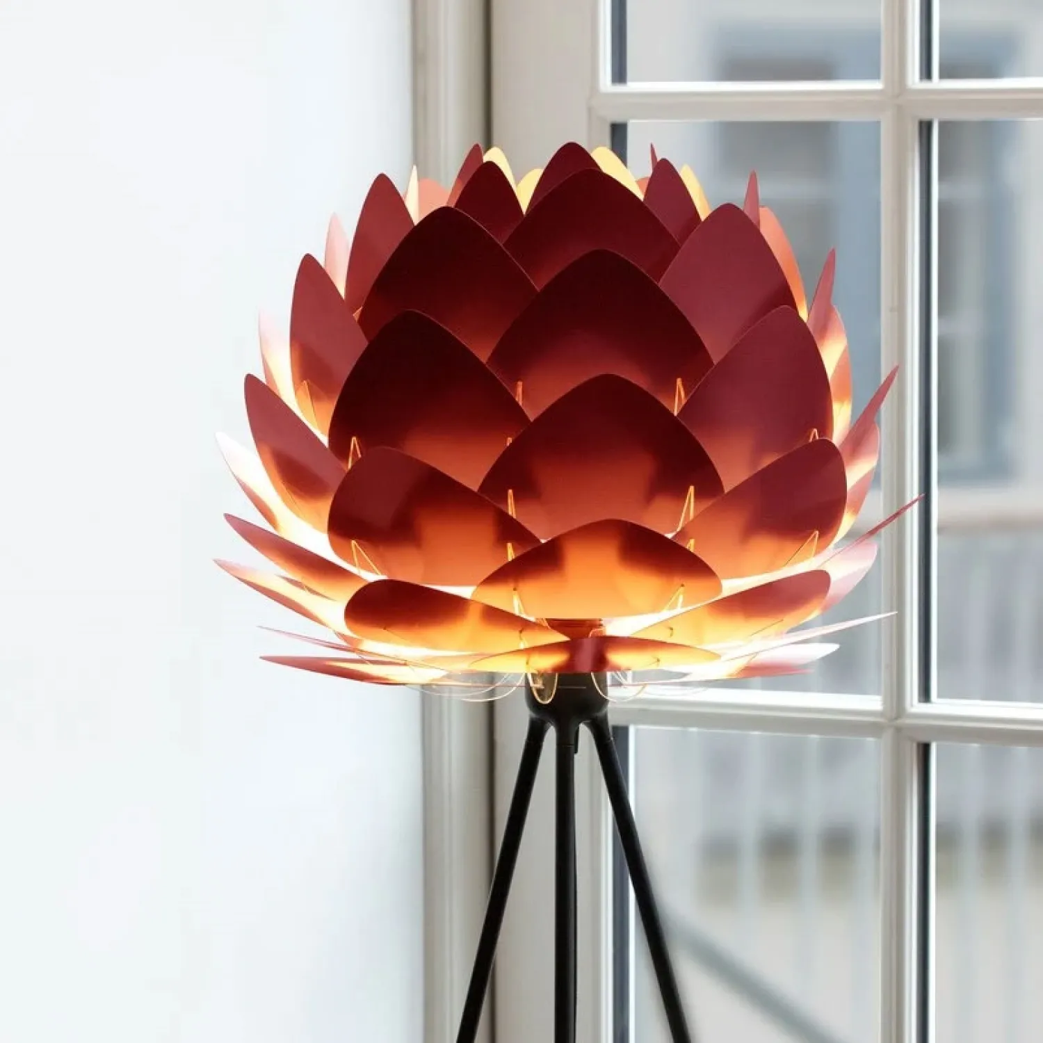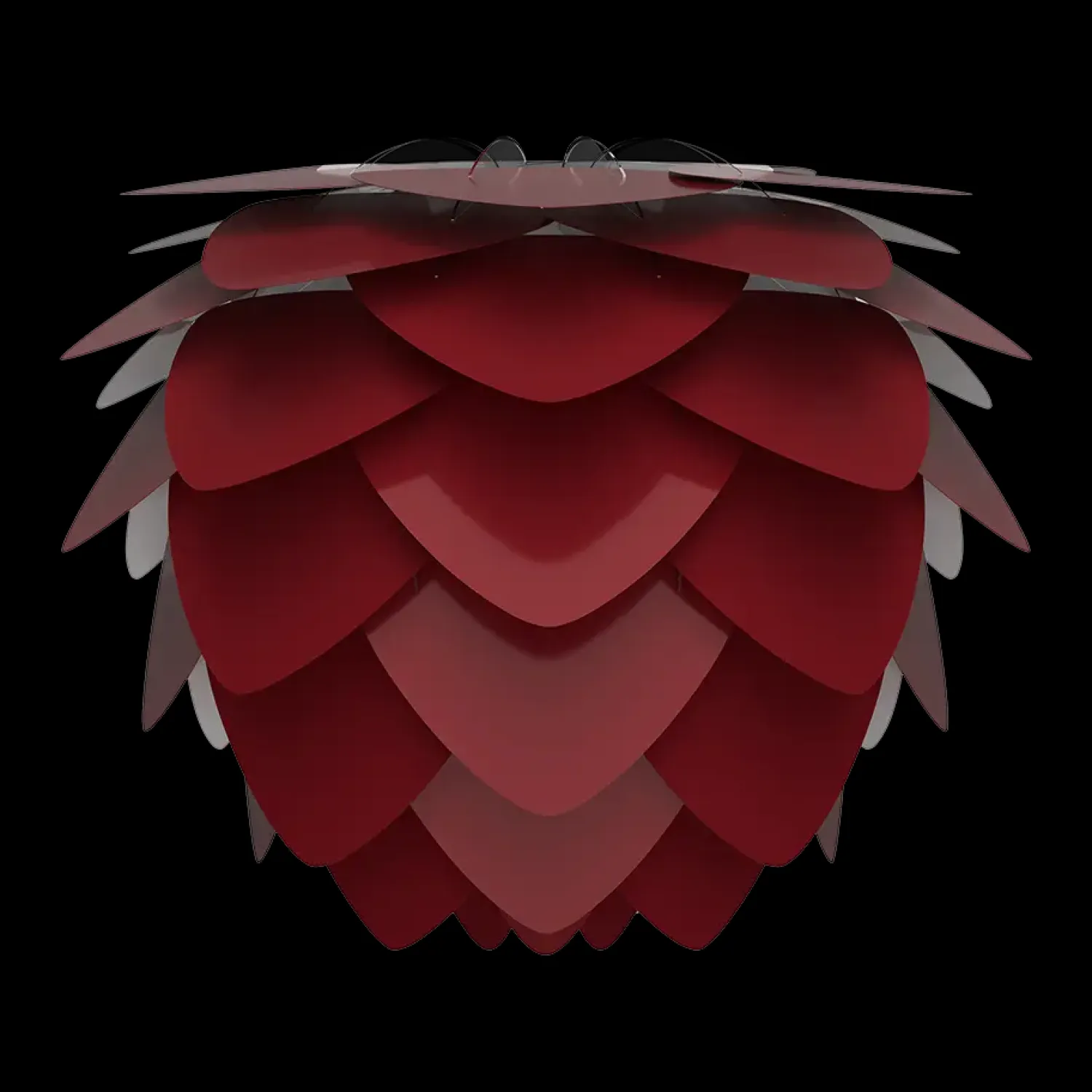 Den smukke kogle-formede Aluvia mini lampeskærm i Ruby red fra Umage er lavet med blade af aluminium, som giver lampen et let og robust udtryk på samme tid. Denne lampeskærm giver dig mange muligheder i din indretning. Hæng fx lampen over dit spisebord eller i entreen – husk at tilkøbe . Eller brug den som gulvlampe med en eller som bordlampe med en .