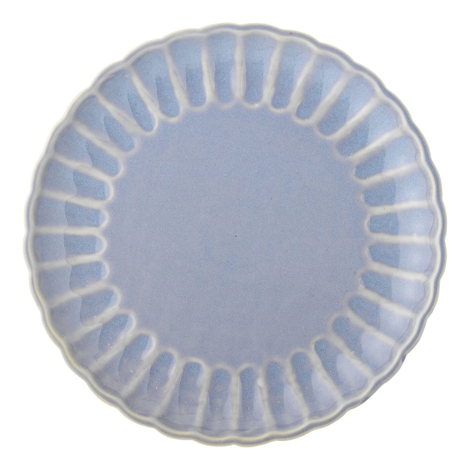 Denne Latina-tallerken fra Bloomingville kombinerer praktisk anvendelighed med et karakteristisk bølget design. Den er fremstillet i holdbart stentøj med en blå glasur, der varierer naturligt i farve og intensitet langs de dekorative kanter.