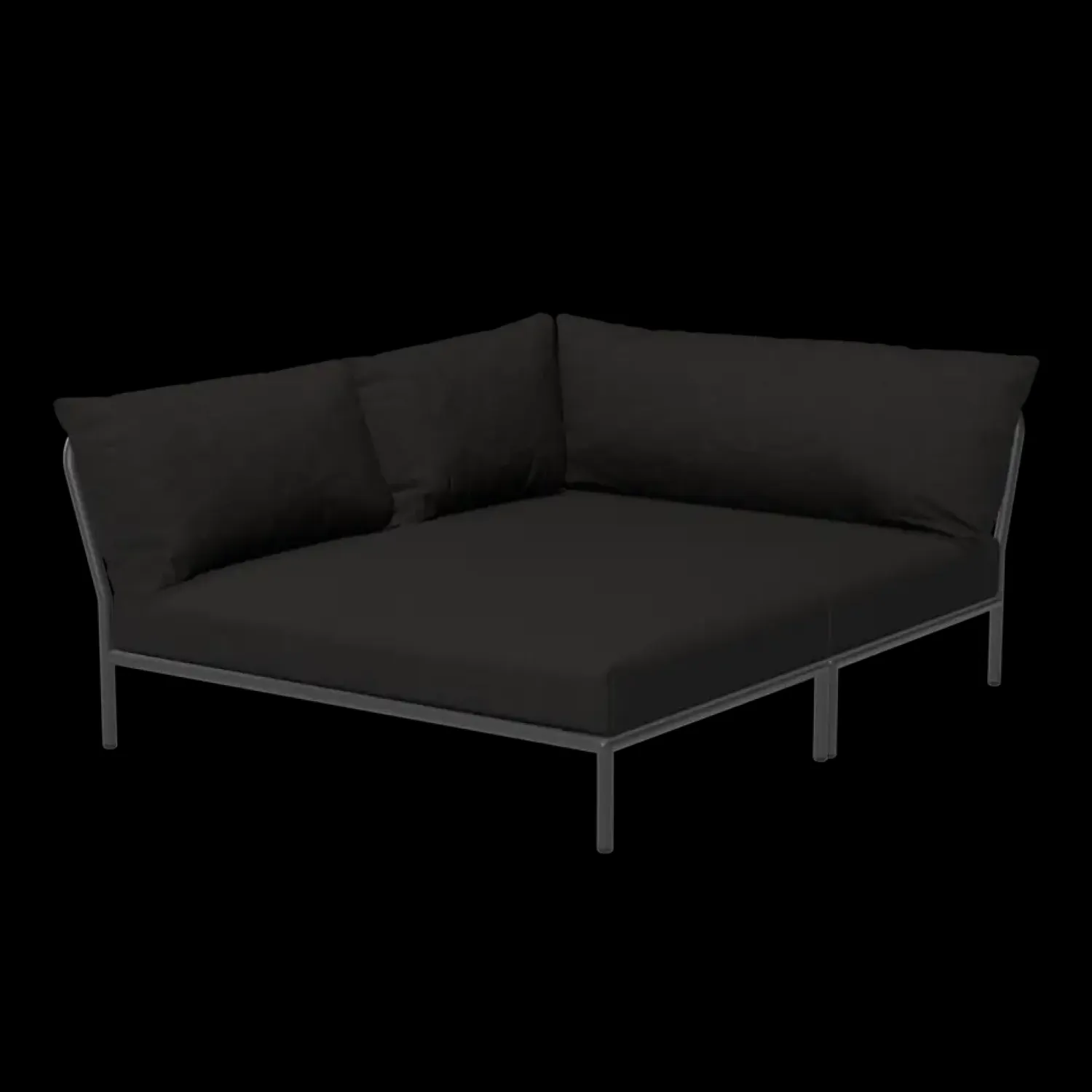 Denne L-formede sofa fra LEVEL 2-serien er skabt til udendørs brug. Den er let at flytte og modstandsdygtig over for vind og vejr, hvilket gør den velegnet til både private og offentlige udeområder.