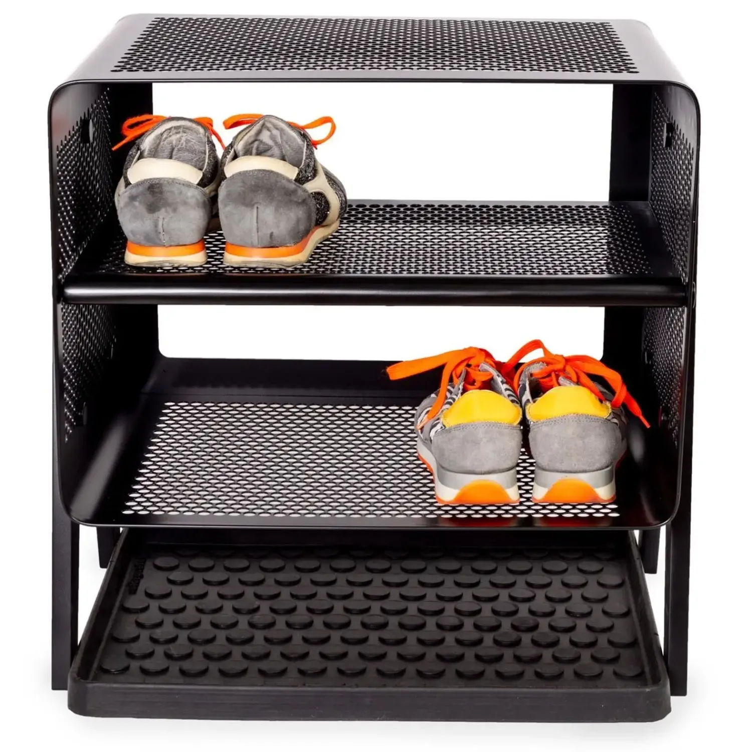Tica Copenhagens lille gulvreol er en multifunktionel reol/møbel i perforeret metal, som er designet til sko, men den kan bruges til en lang række andre ting og sager. Hylden kan let flyttes, så du kan optimere pladsen på reolen.