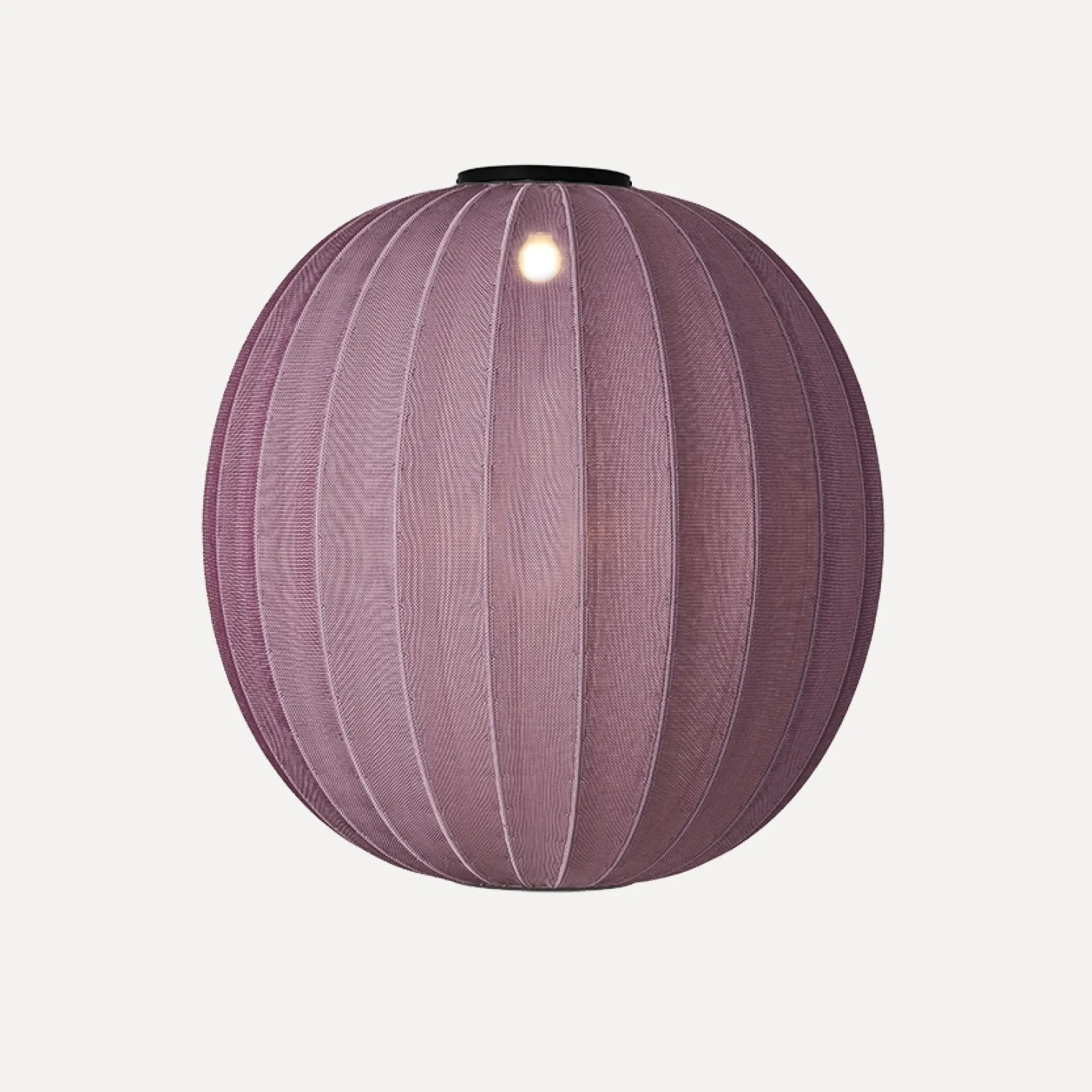 Denne danske loftslampe fra ISKOS-BERLIN udforsker strikningens muligheder inden for belysning. Den 3D-strikkede overflade i burgunderfarvet, genanvendt polyester fordeler lyset og skaber et lysspil i rummet.