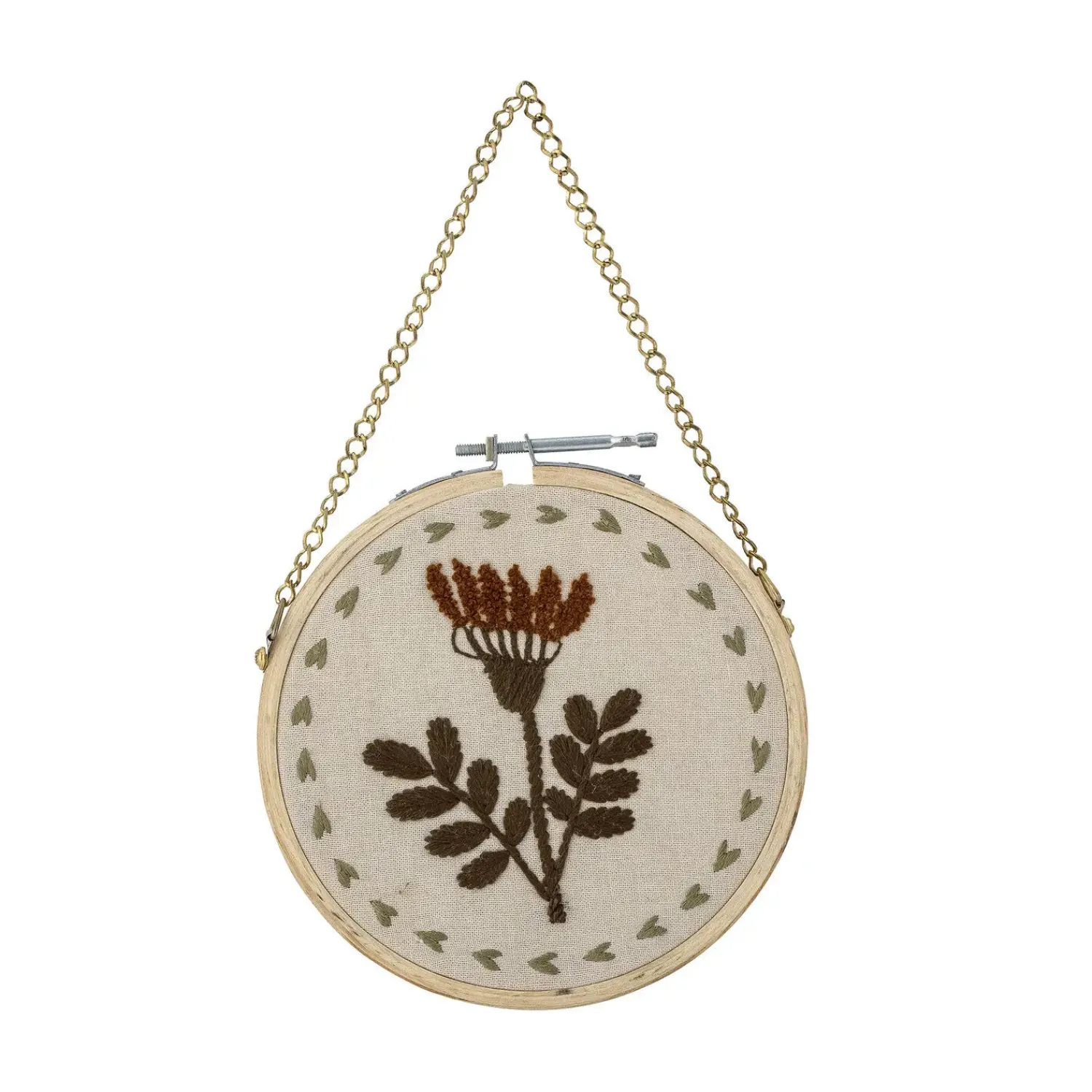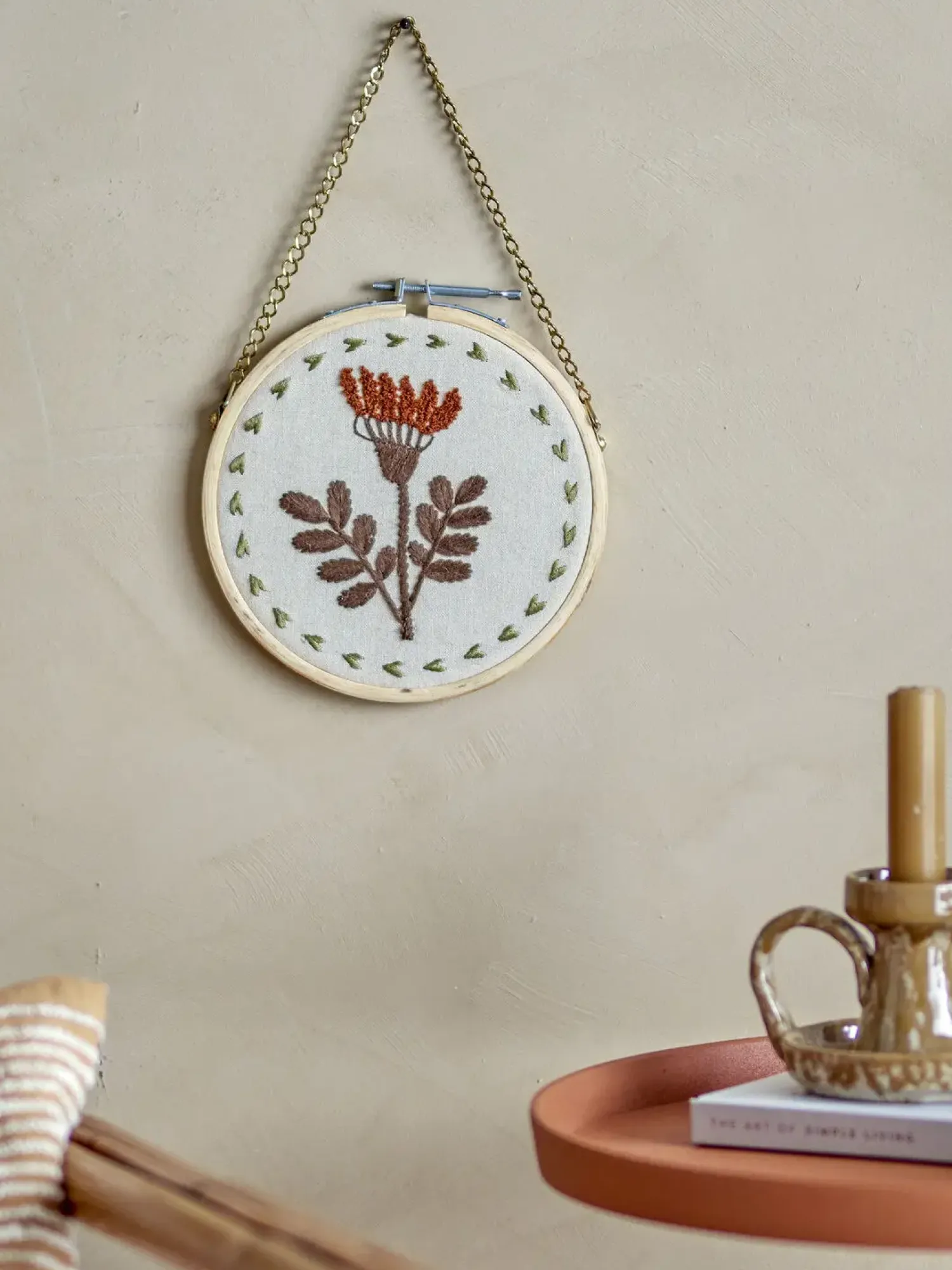 Tilføj et smukt og kreativt element til hjemmet med Maidstone Wall Decoration fra Bloomingville. Med håndbroderede detaljer fremhæves det delikate blomstermønster i varme nuancer. Brug dekorationen til at give liv til enhver væg i hjemmet.