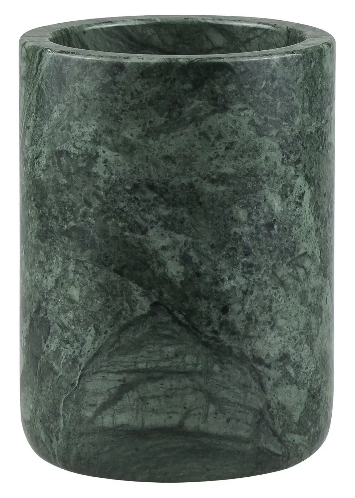 MARBLE-tandbørsteholderen er en elegant og praktisk løsning til opbevaring af tandbørster, makeupbørster eller andre småting, der skal organiseres på badeværelset. Fremstillet af grønt marmor med naturlige variationer i farve og struktur, er hvert krus unikt og tilfører en eksklusiv detalje til rummet.Det solide materiale og det tidløse design gør tandbørsteholderen både funktionelt og dekorativt. Kombinér det med de øvrige produkter i MARBLE-serien for et gennemført look på badeværelset.