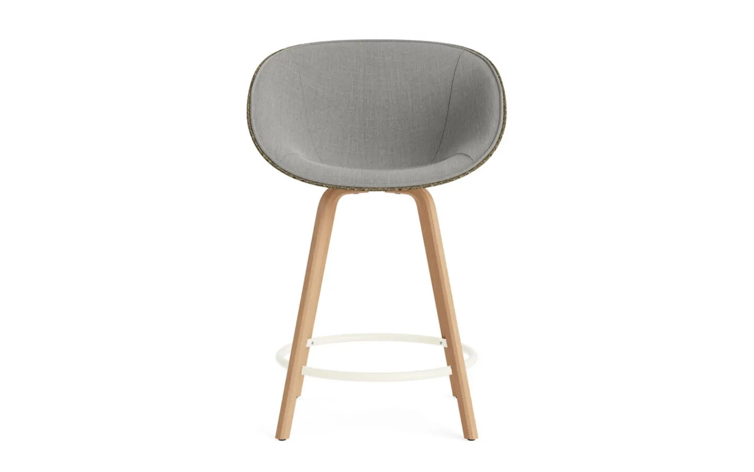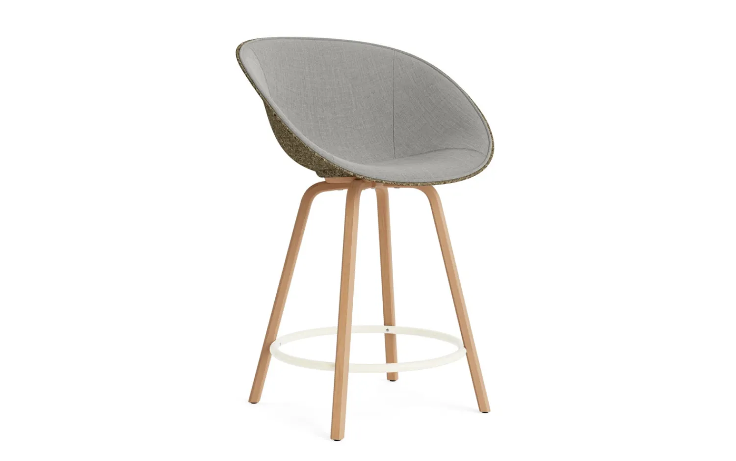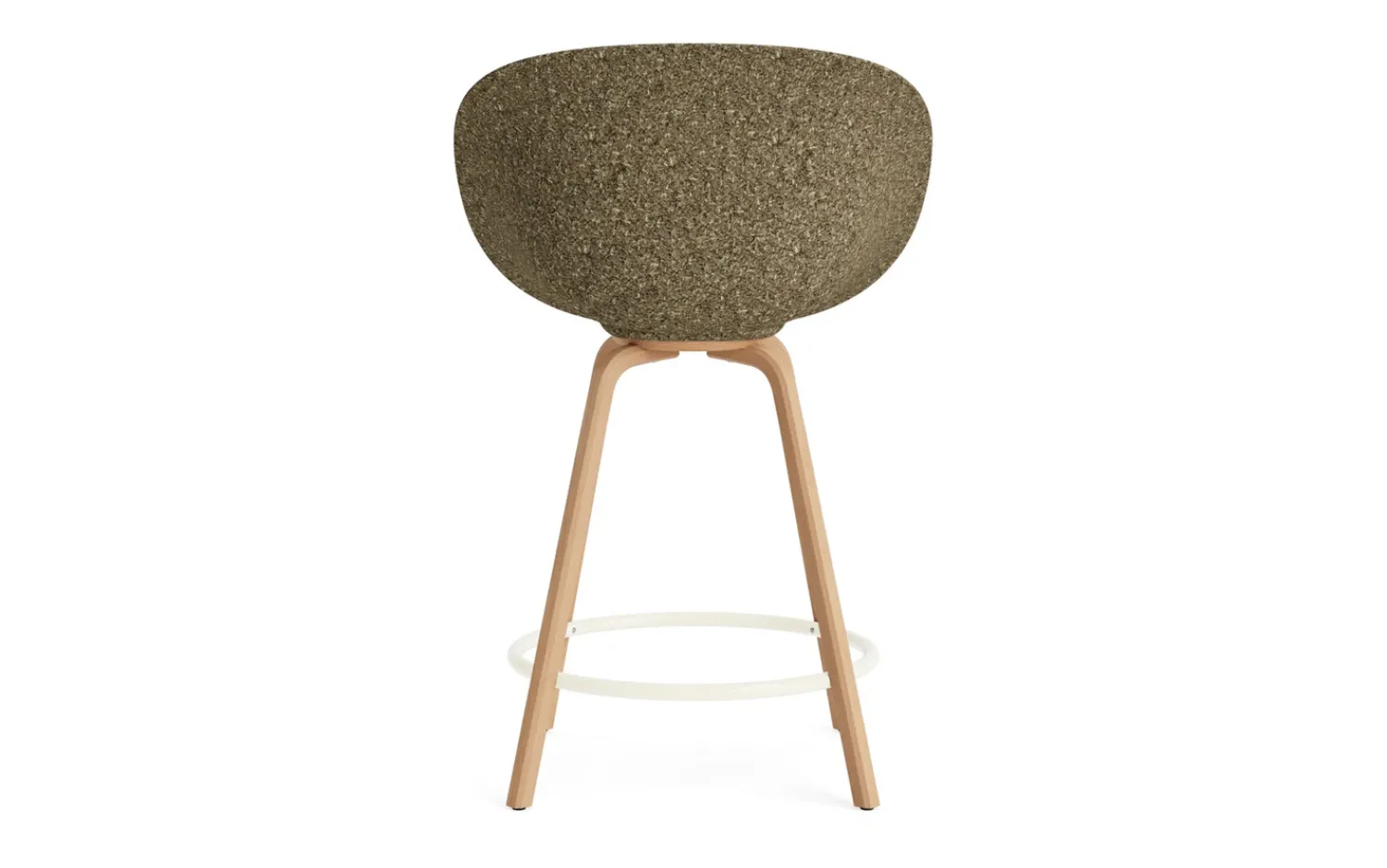 Barstolen har et tofarvet design med lysegrå polstring foran og tangfarvet bagside. Skallen består af 69 % hampefibre og 6 % ålegræs, hvilket giver stolen styrke og karakter.