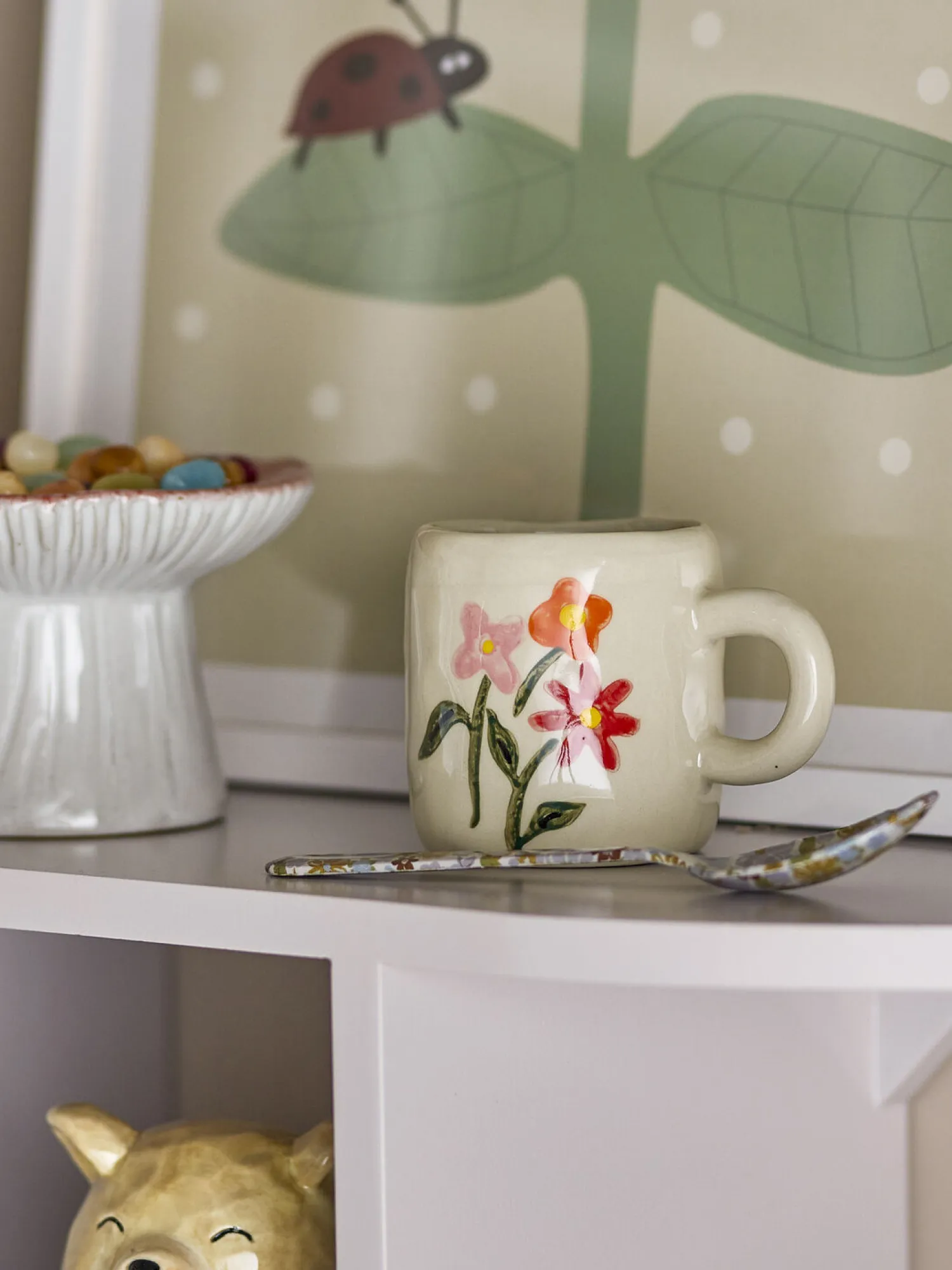 Denne hånddekorerede stentøjskop fra Bloomingville rummer 110 ml og har en diameter på 6 cm og en højde på 6,5 cm. De unikke farvevariationer i det hvide design gør hver kop særegen, mens den fødevaregodkendte kvalitet sikrer tryg anvendelse.