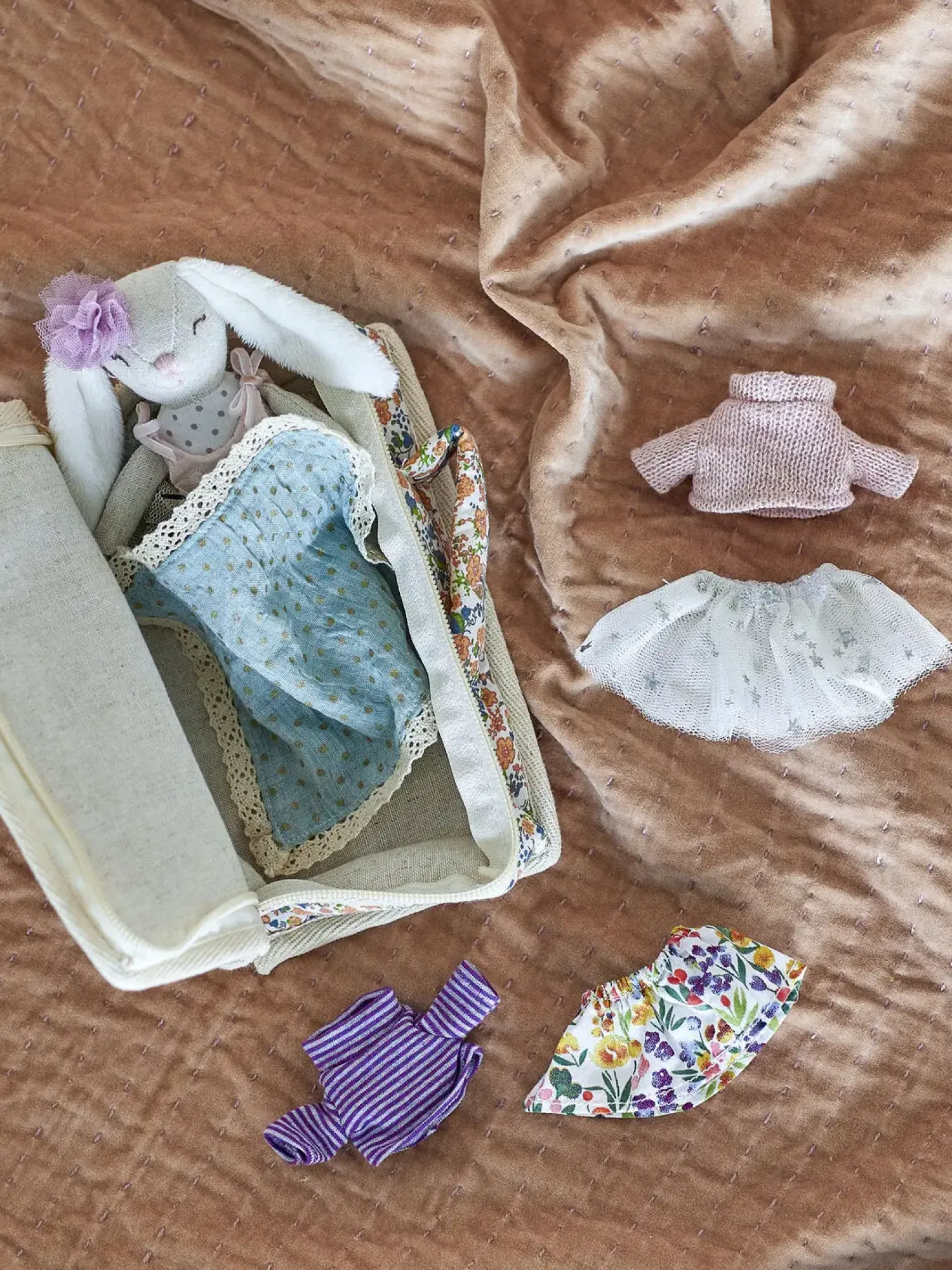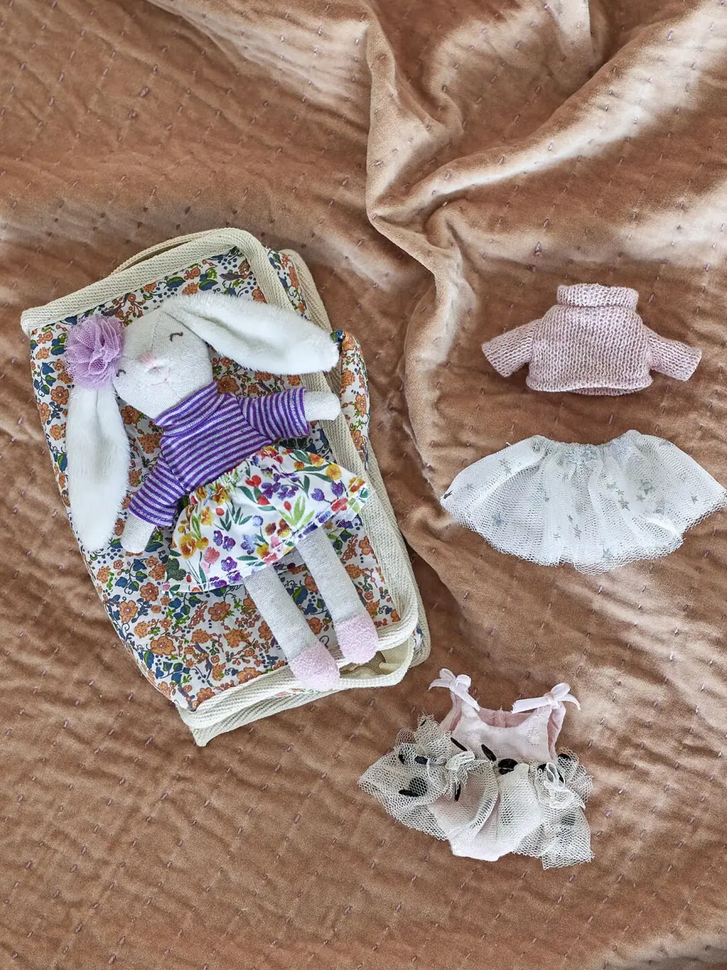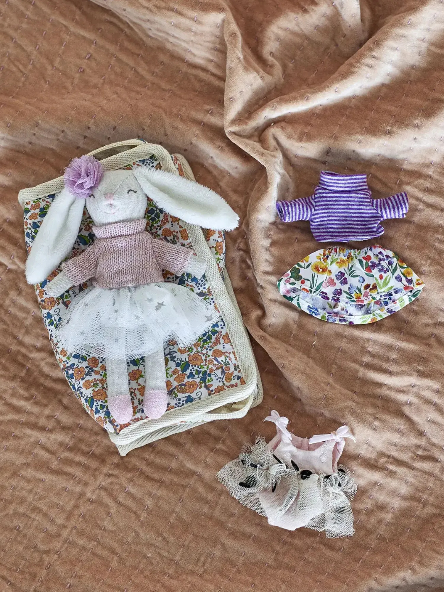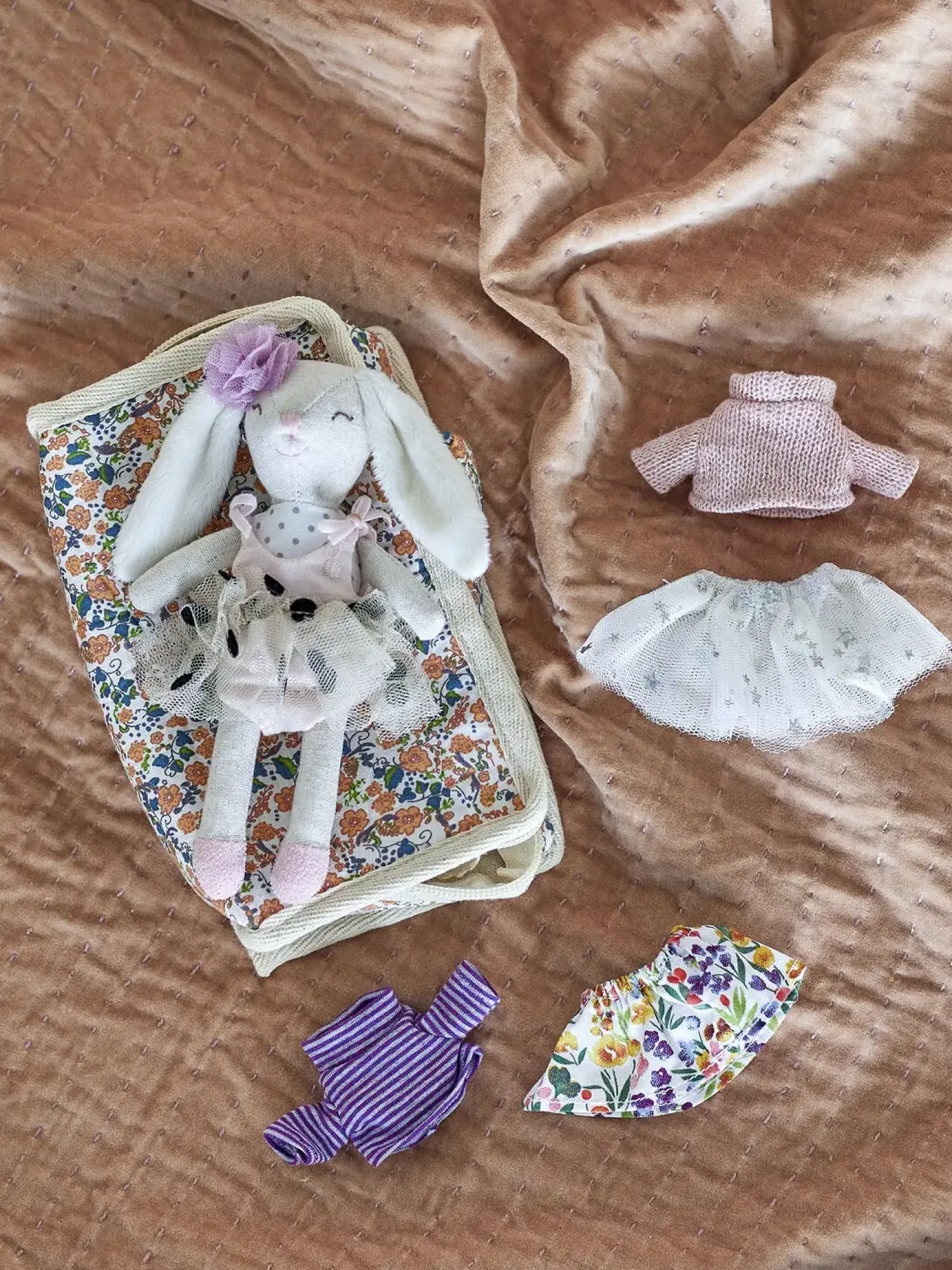 Med sin håndterbare størrelse og bløde materialer er dukken særligt velegnet til de mindste. Den brune dukke kommer med forskellige tøjstykker, der giver mulighed for at træne finmotorikken gennem påklædning og leg.
