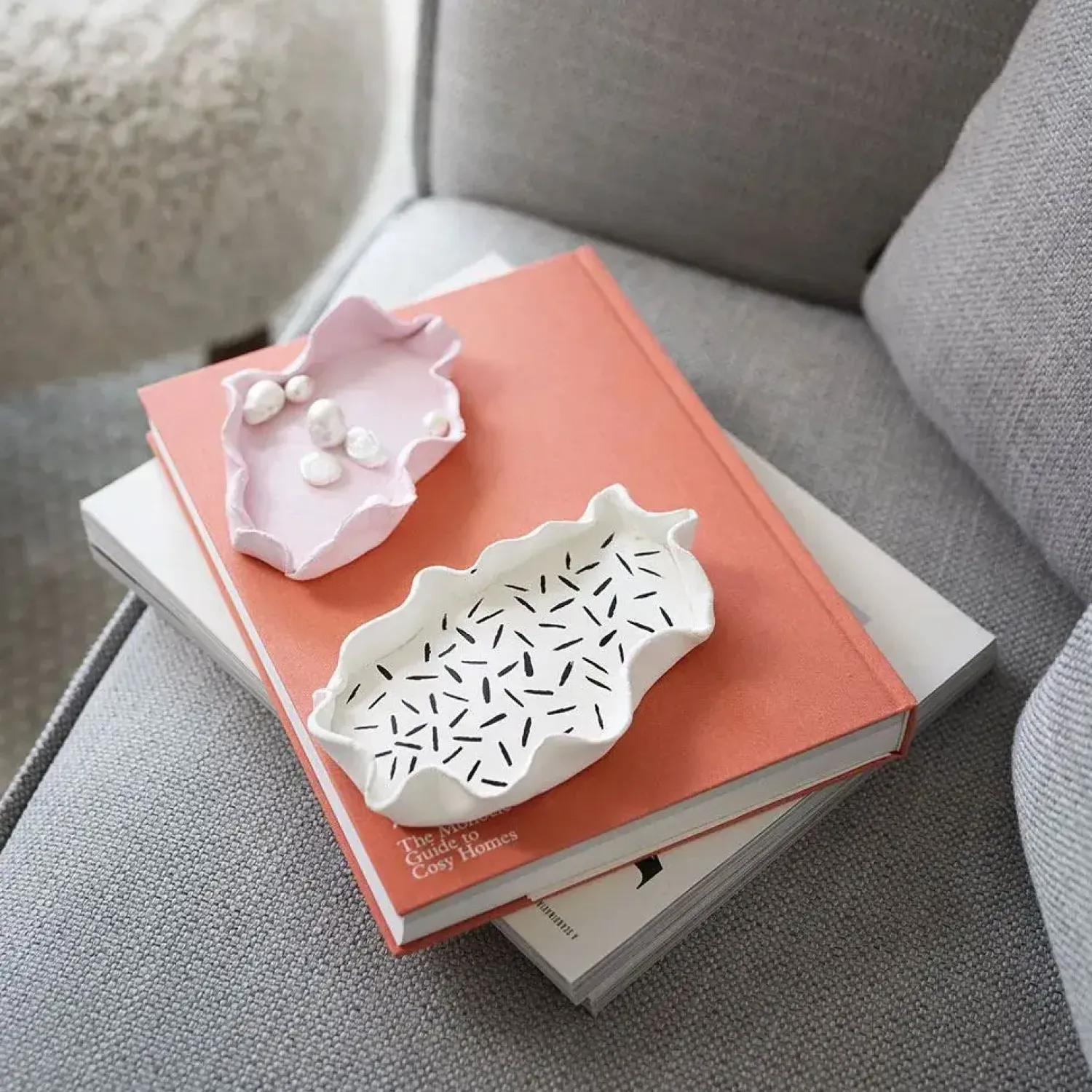 Med dette kit kan du lave to, små skåle i selvhærdende ler, som passer perfekt til smykker eller andre småting. Indeholder alle de materialer du skal bruge, og al den vejledning du behøver.Er du vild med hjemmelavet unika keramik, så er dette kit lige noget for dig. Med selvhærdende ler kan du skabe de fineste skåle til hjemmet. Du kan folde kanterne, så de får en flot, bølget form – og når fadene er tørre, er de klar til at blive malet. Hvis du vil, kan du også dekorere dem med forskellige mønstre, så de får et festligt pift.Indhold: Selvhærdende ler, maling, pensel, rulle