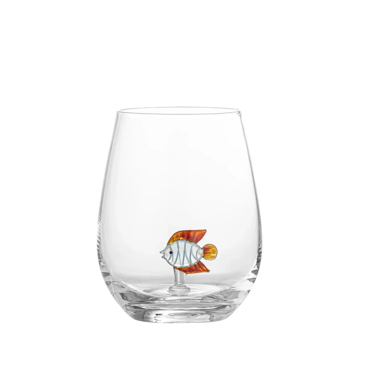 Dette mundblæste drikkeglas fra Bloomingville har en indvendig fiskefigur i orange og røde nuancer. Hvert glas er håndlavet, hvilket betyder, at der kan være små variationer i designet, der gør hvert glas særligt.
