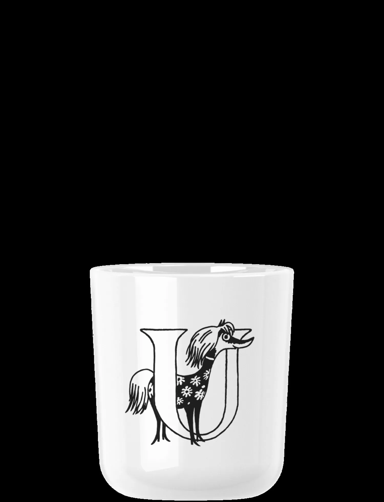 At kunne udtrykke sig er en af de vigtigste ting i verden: det giver mulighed for at kommunikere håb og drømme, forholde sig til andre, engagere sig i vor tids store spørgsmål og skabe forandringer. Alfabetet, der er designet til Moomin ABC kollektionen, er alle baseret på Tove Janssons originale bogstaver. Moomin ABC koppen kommer i 26 versioner med hvert sit bogstav fra A til Z, samt en af de sjove figurer fra Mumiernes verden, afbilledet på siden af koppen. Koppen kan indeholde 0,2 l og er lavet i ABS plast, der er særdeles robust. Der kan desuden tilkøbes en drikketud til koppen til de mindste børn i farverne ’salmon’ eller ’turquoise’. Både kop og drikketud tåler opvaskemaskine og er naturligvis fri for BPA, phtalater og andre skadelige stoffer.