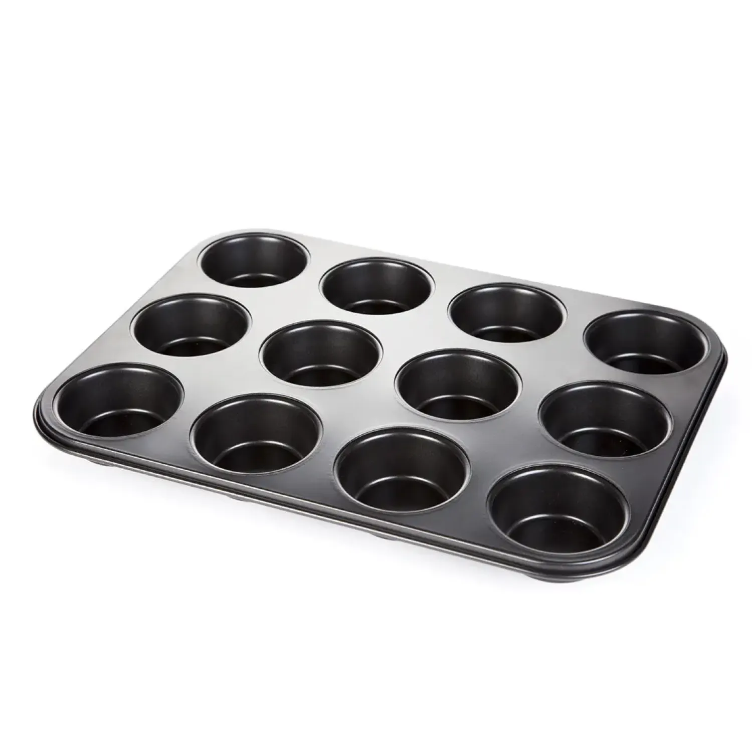 Denne muffinform af holdbart stål med non-stick belægning giver ensartede bageresultater. De 12 bagehuller er ideelle til en families portion morgenmuffins. Formen fordeler varmen jævnt.