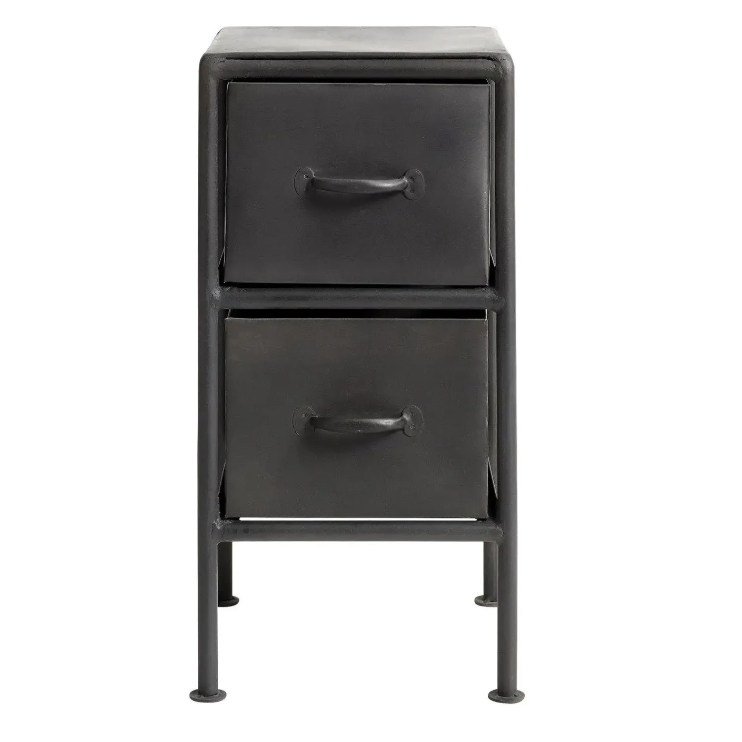 Denne kommode tilbyder en praktisk opbevaringsløsning med sin jernkonstruktion og to skuffer. Den er designet til at være holdbar og modstandsdygtig over for daglig brug. Farven, der varierer fra lys antracitgrå til næsten sort, giver kommoden et neutralt udseende, der kan passe ind i forskellige indretningsstile. Med sin kombination af funktionalitet og holdbarhed er Muubs – Kommode 05 – Jern en praktisk tilføjelse til hjemmet.