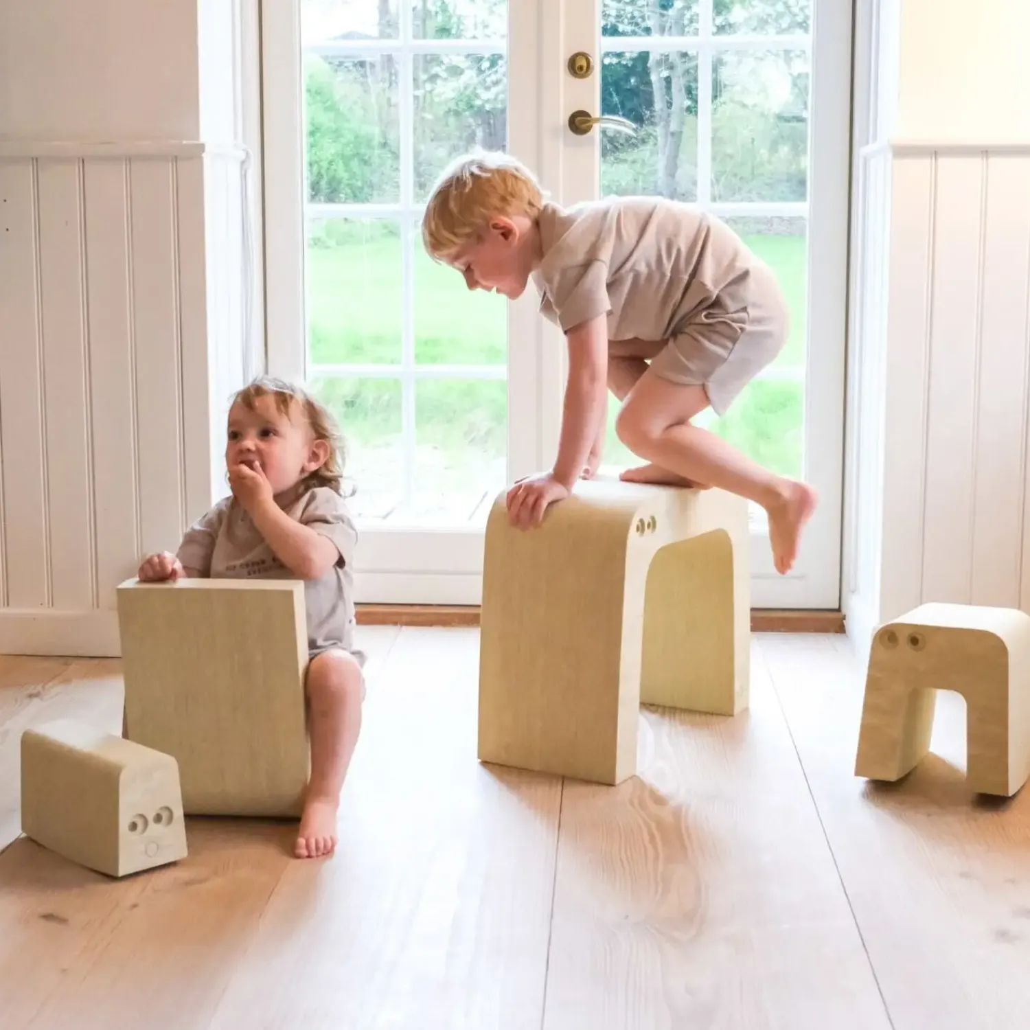 Når barnet skal lidt ned i tempo, er Myresluger sjov at stable – og vælte. Ligesom den er perfekt som balancebom, når den bliver lagt på siden og øves linedans.